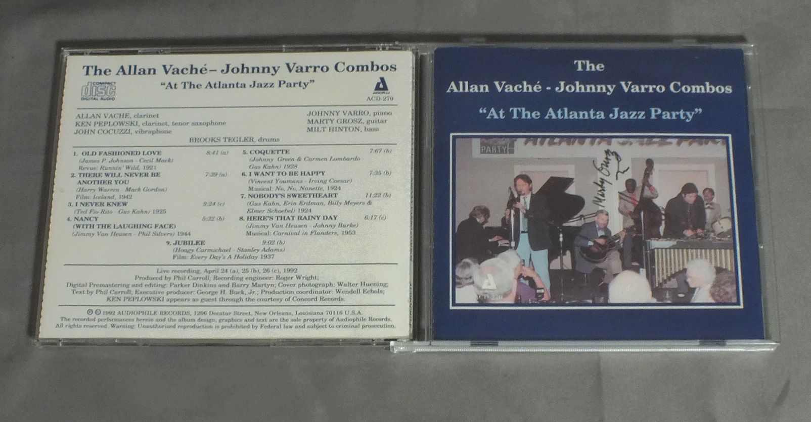 ALLAN VACHE-JOHNNY VARRO COMBOS/AT THE ATLANTA JAZZ PARTY AUTOGRAPHEDAT THE ATLANTA JAZZ PARTY サイン付 ACD270 製造国:米国盤 / Media:CD外観:EX盤の状態:EX 価格(税込):¥1,650 送料 7inch:定形外郵便 360円~LP:定形外郵便 660円~送料は、注文の最終画面で確認頂けます。 > > ALLAN VACHE-JOHNNY VARRO COMBOS/AT THE ATLANTA JAZZ PARTY AUTOGRAPHED 外観 (EX)特記事項:表紙にサイン有り。カードは、ヨレ・スレ・シミなど小 - 軽度です。外観EXの共通説明:ダメージが限定的。中古品としては保存状態がよい方。シミ、ヨゴレ、スレ 少し~軽度。 盤の状態 (EX)特記事項:薄いスリキズが少しありますが、軽微な感じ。盤EXの共通説明:盤面のスリキズが薄いものが少し~軽度 音に出そうなものは無いように見える(軽微なソフトティック音は除く)。 Tweet それぞれの画像をクリックすると、大きい写真が見られます こちらの商品もお勧めです 1,650円 TOSHIYUKI HONDA本田俊之 / SHANGRI-LAシャングリア(楽園) 2,200円 MARC LEVIN AND HIS FREE UNIT / DRAGON SUITE