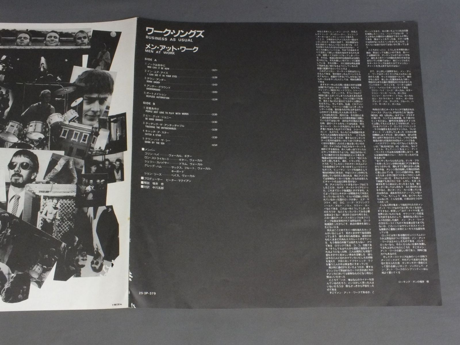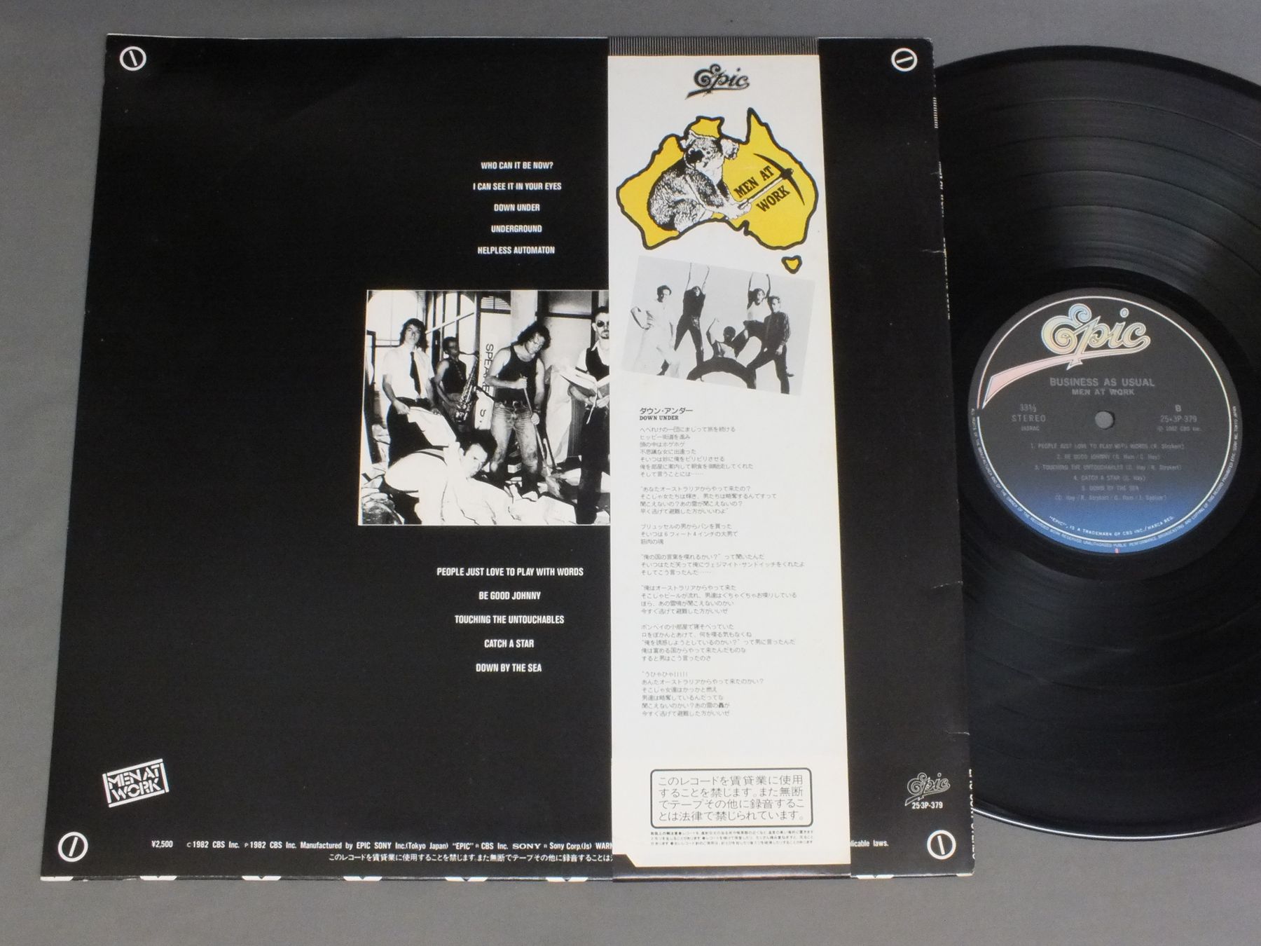 MEN AT WORKメン・アット・ワーク/BUSINESS AS USUALワーク・ソングス 25・3P379 製造国:日本盤 / Media:LP外観:EX盤の状態:EX+帯:EX 価格(税込):¥660(売約済) 送料 7inch:定形外郵便 360円~LP:定形外郵便 660円~送料は、注文の最終画面で確認頂けます。 レコード検索 > CLASSIC CHAMBER > MEN AT WORK/BUSINESS AS USUAL 外観 (EX)特記事項:右上に折れ跡有り。外観EXの共通説明:ダメージが限定的。中古品としては保存状態がよい方。シミ、ヨゴレ、スレ 少し~軽度。 盤の状態 (EX+)特記事項:極薄いスリキズ・スレ少し。一見してきれいな状態です。盤EX+の共通説明:盤面の極薄いスリキズ、スレ少し程度 音に出そうなものは無いように見える(極軽微なソフトティック音は除く)。 帯の状態 (EX):特記なし。 Tweet それぞれの画像をクリックすると、大きい写真が見られます こちらの商品もお勧めです 550円 BOOM CRASH OPERAブーム・クラッシュ・オペラ / GREAT WALLグレイト・ウォール 440円 TAXXIタクシー / STATES OF EMERGENCY緊急発進 ! 440円 BELLE STARSベル・スターズ / BELLE STARSベル・スターズ 440円 WILD BLUEワイルド・ブルー / NO MORE JINXノー・モア・ジンクス 440円 HIPSWAYヒップスウェイ / HIPSWAYヒップスウェイ 1,210円 GO WESTゴー・ウェスト / MORE BANGS & CRASHESモア・バン ! アンド・クラッシュ ! 440円 TEN TENテン・テン / WALK ONウォーク・オン 550円 CORBIN HANNER BANDコーバン・ハナー・バンド / SON OF AMERICAサン・オブ・アメリカ