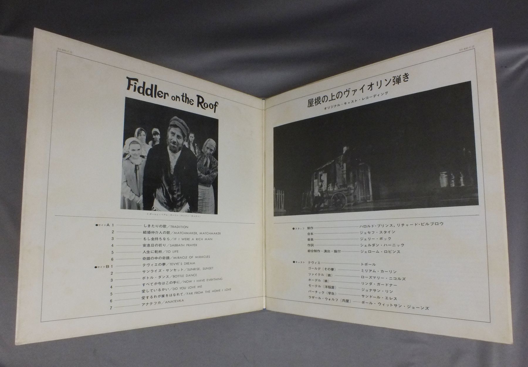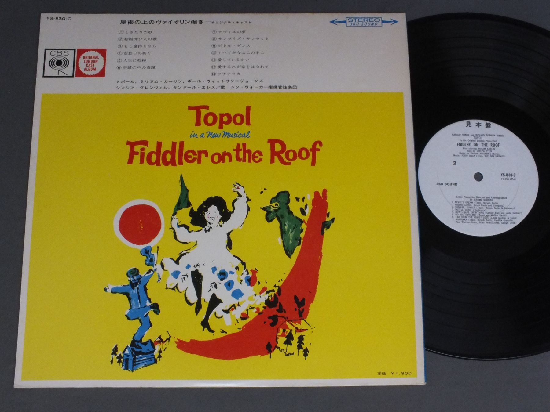 ORIGINAL CASTオリジナル・キャスト/MUSICAL FIDDLER ON THE ROOF屋根の上のヴァイオリン弾き YS830C 製造国:日本盤 / Media:LP外観:EX盤の状態:EX+ 価格(税込):¥550(売約済) 送料 7inch:定形外郵便 360円~LP:定形外郵便 660円~送料は、注文の最終画面で確認頂けます。 > > ORIGINAL CAST/MUSICAL FIDDLER ON THE ROOF 外観 (EX)特記事項:見開きと表ジャケにシミ軽有り外観EXの共通説明:ダメージが限定的。中古品としては保存状態がよい方。シミ、ヨゴレ、スレ 少し~軽度。 盤の状態 (EX+)特記事項:極薄いスリキズ・スレ少し。一見してきれいな状態です。盤EX+の共通説明:盤面の極薄いスリキズ、スレ少し程度 音に出そうなものは無いように見える(極軽微なソフトティック音は除く)。 その他:白見本盤 Tweet それぞれの画像をクリックすると、大きい写真が見られます こちらの商品もお勧めです 770円 ORIGINAL CAST RECORDINGブロードウェイ・オリジナル・キャスト / TANGO ARGENTINO ORIGINAL CAST RECORDINGタンゴ・アルヘンティーノ 660円 RICHARD ATTENBOROUGHリチャード・アッテンボロー監督 / SOUND TRACK CHORUS LINE映画 コーラスライン 880円 RAN OTORI & JUN ANNA鳳蘭 & 安奈淳 / SING LOVE愛を歌う 770円 LIZA MINNELLIライザ・ミネリ / CABARET ORIGINAL SOUND TRACK映画 キャバレー