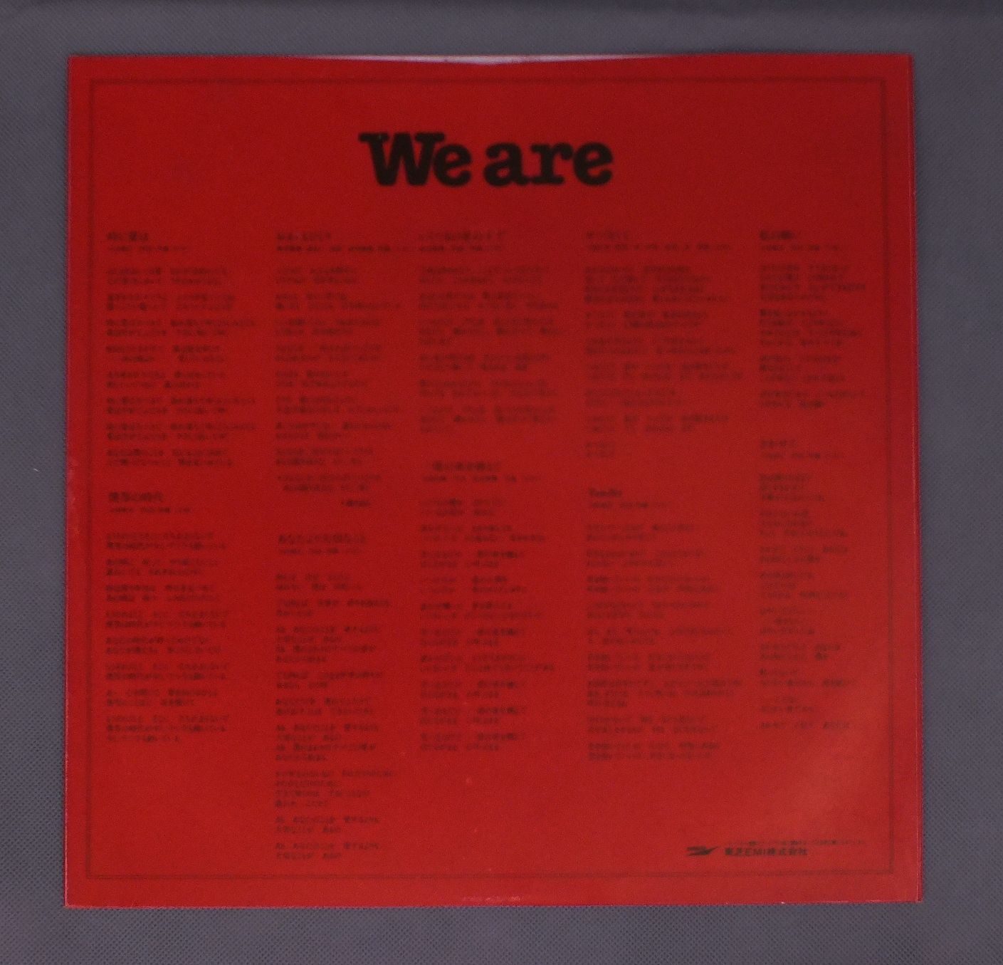 OFF COURSEオフコーズ/WE ARE ETP-90038 製造国:日本盤 / Media:LP外観:EX盤の状態:EX+ 価格(税込):¥550(売約済) 送料 7inch:定形外郵便 360円~LP:定形外郵便 660円~送料は、注文の最終画面で確認頂けます。 > > OFF COURSE/WE ARE 外観 (EX)特記事項:ジャケ表面にシミ有り。外観EXの共通説明:ダメージが限定的。中古品としては保存状態がよい方。シミ、ヨゴレ、スレ 少し~軽度。 盤の状態 (EX+)特記事項:極薄いスリキズ・スレ少し。一見してきれいな状態です。盤EX+の共通説明:盤面の極薄いスリキズ、スレ少し程度 音に出そうなものは無いように見える(極軽微なソフトティック音は除く)。 その他:白見本盤 Tweet それぞれの画像をクリックすると、大きい写真が見られます こちらの商品もお勧めです 440円 MARI AMACHI天地真理 / BRIDGE OF A RAINBOW虹をわたって 1,210円 VARIOUS HANDICAPPED SINGERSたんぽぽの会 / INTERNATIONAL MUSIC FESTIVAL WATABOSHI小さな一歩 世界わたぼうし音楽祭 990円 MIZUKI OHURA大浦みずき / NIGHT & DAYナイト&デイ 880円 YOUSUI INOUE井上陽水 / EVERY NIGHT 1,650円 RC SUCCESIONRCサクセション / BEAT POPSBEAT POPS-RCサクセション 770円 HIRO TSUNODA & JAP`S GAP`Sつのだ・ひろ&ジャップス・ギャップス / 1st ALBUMジャップス・ギャップス・テーマ 1,320円 CHA-CHAチャ・チャ / HITOMI NO-NAKA-NO TAKARAJIMA瞳の中の宝島 550円 HIDEKI SAIJO西城秀樹 / KOU NO BOUSOU恋の暴走
