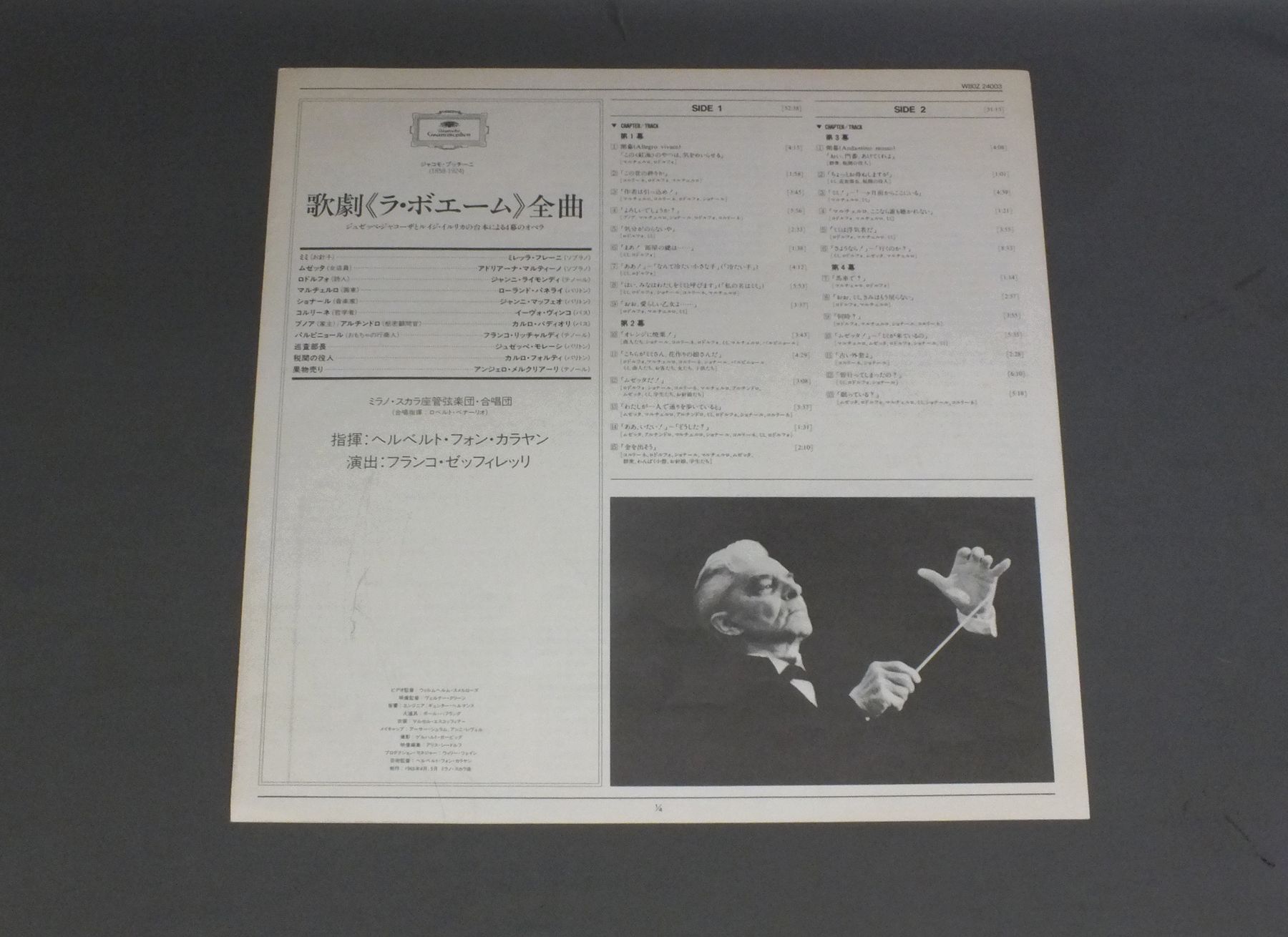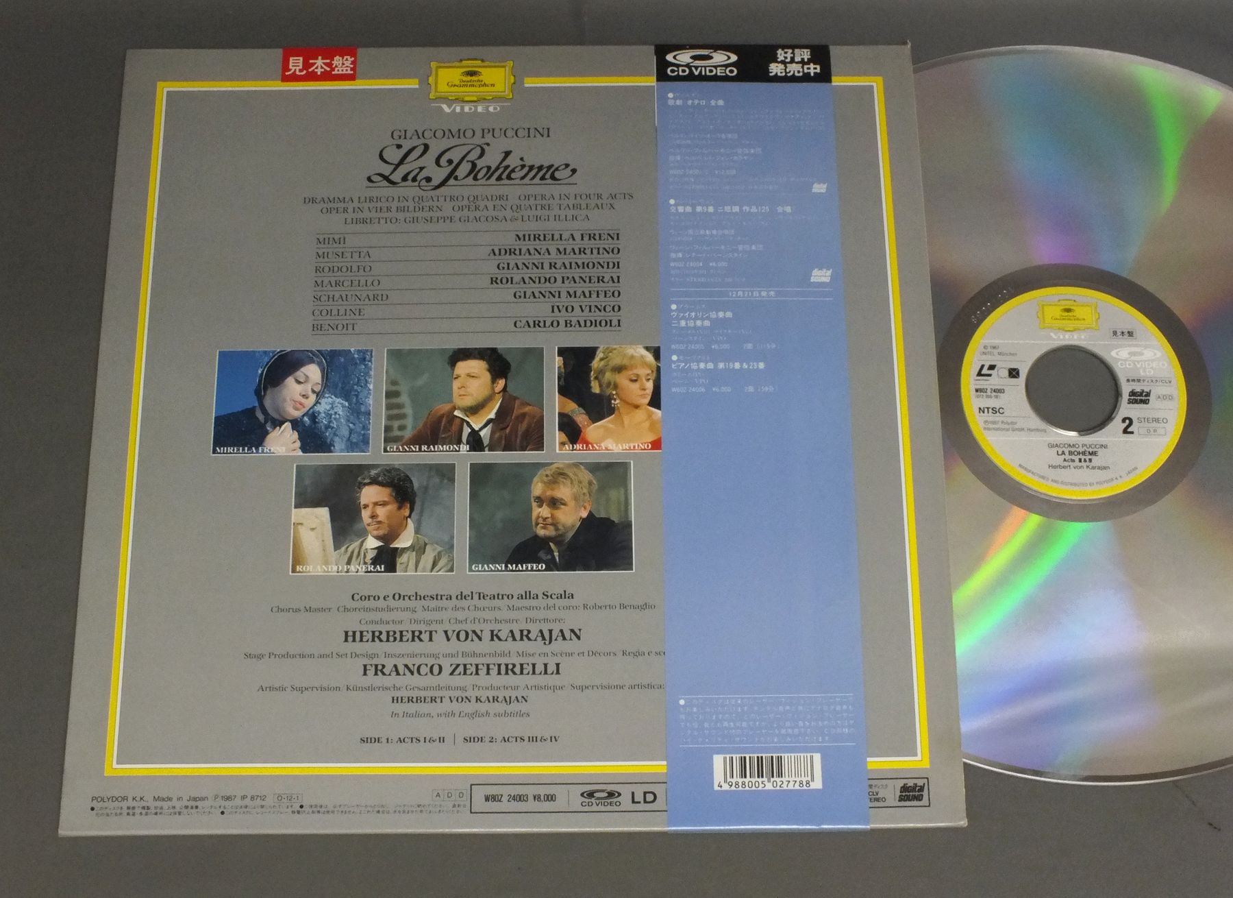 KARAJAN/SCALAカラヤン/ミラノ・スカラ座/GIACOMO PUCCINI LA BOHEMEプッチーニ ラ・ボエーム (全曲) W80Z-24003 製造国:日本盤 / Media:LD外観:EX盤の状態:EX帯:EX- 価格(税込):¥990 送料 7inch:定形外郵便 360円~LP:定形外郵便 660円~送料は、注文の最終画面で確認頂けます。 レコード検索 > CLASSIC CHAMBER > KARAJAN/SCALA/GIACOMO PUCCINI LA BOHEME 外観 (EX)特記事項:特記なし。外観EXの共通説明:ダメージが限定的。中古品としては保存状態がよい方。シミ、ヨゴレ、スレ 少し~軽度。 盤の状態 (EX)特記事項:薄いスリキズ・スレ軽くある感じ。軽微なものの様子です。盤EXの共通説明:盤面のスリキズが薄いものが少し~軽度 音に出そうなものは無いように見える(軽微なソフトティック音は除く)。 帯の状態 (EX-):特記なし。 その他:見本盤 Tweet それぞれの画像をクリックすると、大きい写真が見られます こちらの商品もお勧めです 990円 JANET BAKER - BARBIROLLI - NEW PHILHARMONIA ORCHESTRAジャネット・ベイカー - バルビローリ - ニュウ・フィルハーモニア / RAVEL - SHEHERAZADEラヴェル - シェヘラザード 1,540円 VISHNEVSKAYA - ROSTROPOVICHガリーナ・ヴィシネフスカヤ - ロストロポーヴィチ / LIEDER SONGS CHANTS 1,320円 KUNZ - PAULIK - WIENNA STATE OPERA ORCHESTRA & CHORUSクンツ - パウリク - ウィーン国立歌劇場管弦楽団・合唱団 / ERICH KUNZ SINGS GERMAN UNIVERSITY SONGSドイツ学生の歌 990円 ENRICO CARUSOエンリコ・カルーソ / ENRICO CARUSO VOL.2 1,320円 BRUNO TURNER - ENSEMBLE PRO CANTIONE ANTIQUA LONDONブルーニ・ターナー - プロ・カンツォーネ・アンティカ / ORLANDO DI LASSO - REQUIEMオルランド・ディ・ラッソ - レクイエム 990円 MARIA CALLASマリア・カラス / BIZET - CARMEN HIGHLIGHTSビゼー - 歌劇カルメン ハイライト 990円 GROSSMANN - VIENNA PRO MUSICA ORCHESTRAグロスマン - ウィーン・プロ・ムジカ・管弦楽団 / MOZART - MASS IN C MINORモーツァルト - ミサハ短調 990円 BORIS CHRISTOFF - FEODOR POTORJINSKI RUSSIAN CHOIRボリス・クリストフ - ポトルジンスキー・ロシア合唱団 / RUSSIAN FOLK SONGS AND SACRED MUSICロシア民謡集