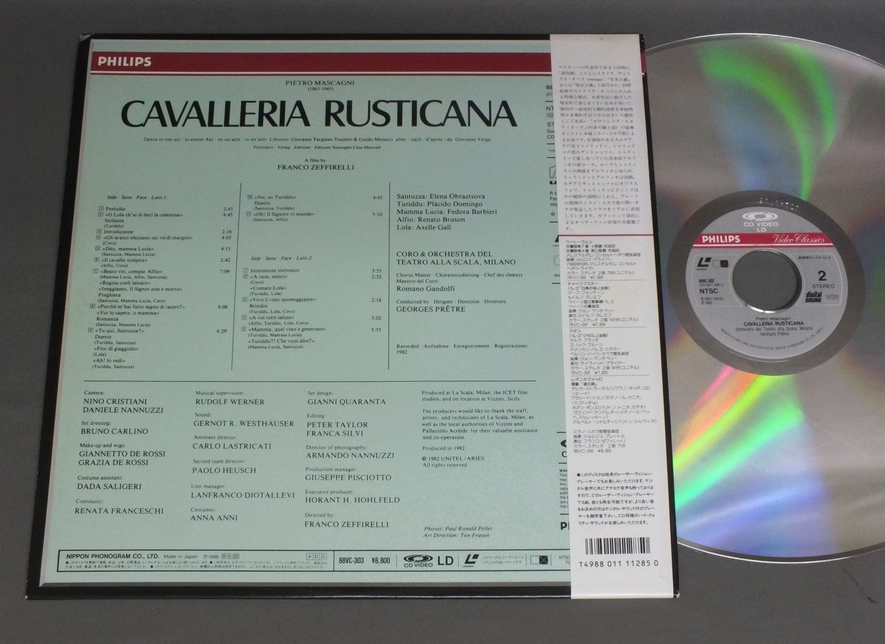 OBRAZTSOVA/DOMING/SCALAオブラスツォワ、ドミンゴ、プレートル/スカラ座/MASCAGNI CAVALLERIA RUSTICANAカヴァレリア・ルスティカーナ全曲 88VC-303 製造国:日本盤 / Media:LD外観:EX盤の状態:EX帯:EX+ 価格(税込):¥990 送料 7inch:定形外郵便 360円~LP:定形外郵便 660円~送料は、注文の最終画面で確認頂けます。 > > OBRAZTSOVA/DOMING/SCALA/MASCAGNI CAVALLERIA RUSTICANA 外観 (EX)特記事項:薄いシミ軽少々有り外観EXの共通説明:ダメージが限定的。中古品としては保存状態がよい方。シミ、ヨゴレ、スレ 少し~軽度。 盤の状態 (EX)特記事項:薄いスリキズ・スレ軽くある感じ。軽微なものの様子です。盤EXの共通説明:盤面のスリキズが薄いものが少し~軽度 音に出そうなものは無いように見える(軽微なソフトティック音は除く)。 帯の状態 (EX+):特記なし。 Tweet それぞれの画像をクリックすると、大きい写真が見られます こちらの商品もお勧めです 990円 JANET BAKER - BARBIROLLI - NEW PHILHARMONIA ORCHESTRAジャネット・ベイカー - バルビローリ - ニュウ・フィルハーモニア / RAVEL - SHEHERAZADEラヴェル - シェヘラザード 990円 BORIS CHRISTOFF - FEODOR POTORJINSKI RUSSIAN CHOIRボリス・クリストフ - ポトルジンスキー・ロシア合唱団 / RUSSIAN FOLK SONGS AND SACRED MUSICロシア民謡集 1,540円 DOMINGO ドミンゴ / VERDI ARIASヴィルディ オペラアリア集 2,420円 LILY PONSリリー・ポンス / LILY PONS GALA 1,540円 FISCHER DIESKAU - ESCHENBACHフィッシャーディスカウ - エッシェンバッハ / SCHUMANN - LIEDERシューマン歌曲集 990円 YELENA OBRAZTSOVA - KHAIKIN - BOLISHOI THEATRE ORCH.エレーナ・オブラスツォワ - ハイキン - ボリショイ歌劇場管弦楽団 / OPERA ARIASオペラ・アリア集 1,540円 HERMANN PREY - BERNHARD KLEEヘルマン・プレイ&ベルナルト・クレー / MOZART - LIEDERモーツアルト歌曲集 1,540円 KARAJAN - WIENER SINGVEREIN - VERLINER PHILHARMONIKERカラヤン - ウィーン楽友協会合唱団 - ベルリンフィル / BACH - MATTEHAUS PASSIONバッハ - マタイ受難曲