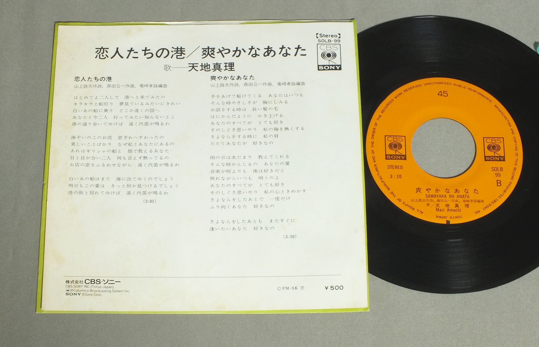 MARI AMACHI天地真理/KOIBITOTACHI NO MINATO恋人たちの港 SOLB99 製造国:日本盤 / Media:7inch外観:EX盤の状態:EX+ 価格(税込):¥550 送料 7inch:定形外郵便 360円~LP:定形外郵便 660円~送料は、注文の最終画面で確認頂けます。 > > MARI AMACHI/KOIBITOTACHI NO MINATO 外観 (EX)特記事項:シミ多少有り。外観EXの共通説明:ダメージが限定的。中古品としては保存状態がよい方。シミ、ヨゴレ、スレ 少し~軽度。 盤の状態 (EX+)特記事項:極薄いスリキズ・スレ少し。一見してきれいな状態です。盤EX+の共通説明:盤面の極薄いスリキズ、スレ少し程度 音に出そうなものは無いように見える(極軽微なソフトティック音は除く)。 Tweet それぞれの画像をクリックすると、大きい写真が見られます こちらの商品もお勧めです 1,320円 MAKO ISHINO石野真子 / MY COLLECTIONマイ・コレクション 770円 SEIKO MATSUDA松田聖子 / CANDYキャンディー 770円 YUKO ISHIKAWA石川優子 / REN`AI-KODOKU-JIN恋愛孤独人 660円 HIROKO TANIYAMA谷山浩子 / MOUHITORI NO ALICEもうひとりのアリス 550円 ERI NITTA新田恵利 / E-AREA 1,320円 ONYANKO CLUBおニャン子クラブ / MERRY X`MAS FOR YOU PIC DISCメリー・クリスマス・フォー・ユー 1,210円 SAORI MINAMI南沙織 / SUFFERING AGEヤングのテーマ 傷つく世代 770円 SHOKO SAWADA沢田聖子 / GRADUATION卒業