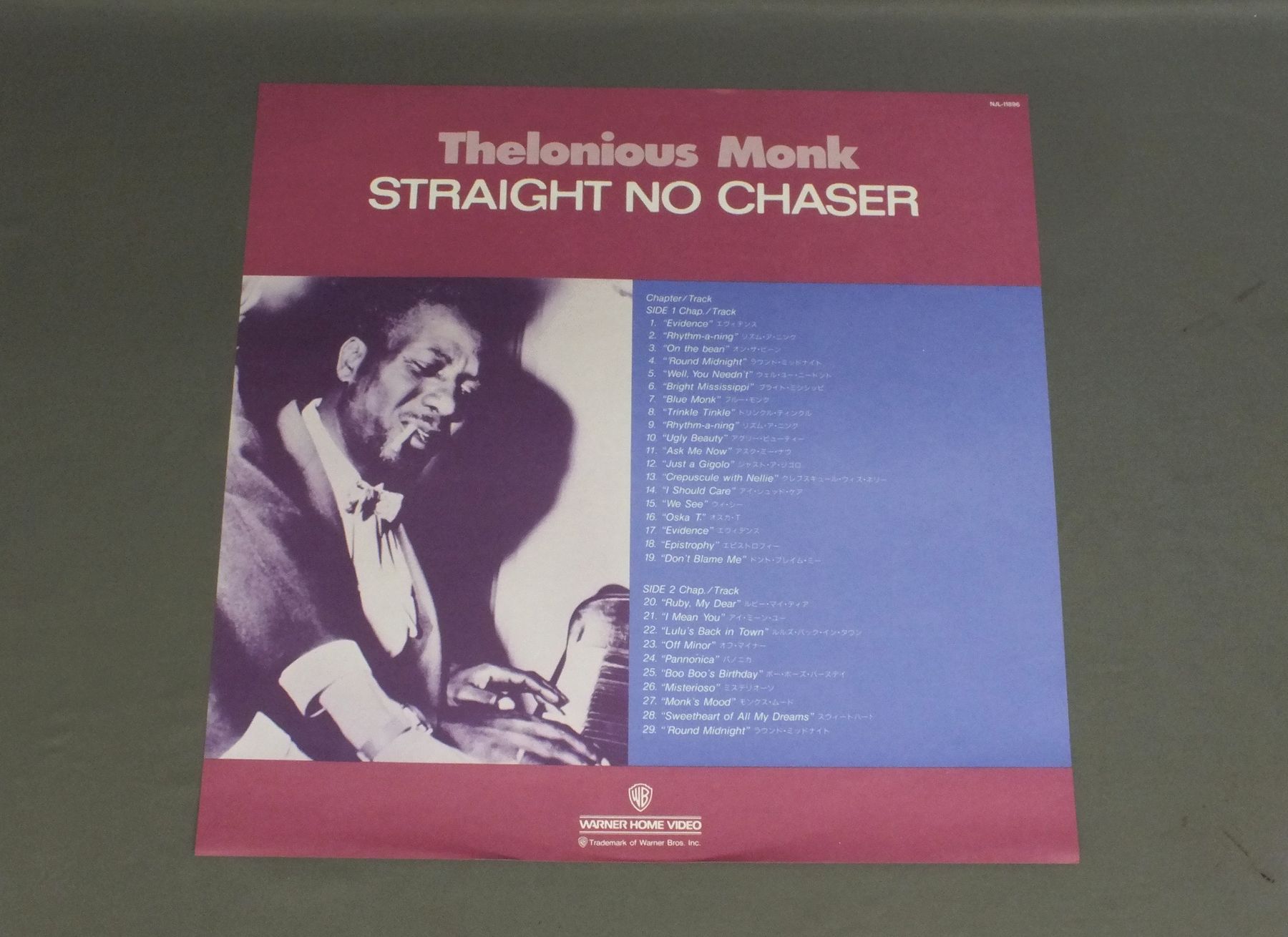 THELONIOUS MONKセロニアス・モンク/STRAIGHT NO CHASERストレート・ノー・チェイサー NJL11896 製造国:日本盤 / Media:LD外観:EX+盤の状態:EX帯:EX+ 価格(税込):¥1,100 送料 7inch:定形外郵便 360円~LP:定形外郵便 660円~送料は、注文の最終画面で確認頂けます。 > > THELONIOUS MONK/STRAIGHT NO CHASER 外観 (EX+)特記事項:特記なし。外観EX+の共通説明:中古としては美品、一見してきれいでダメージが軽微。シミ、ヨゴレ、スレ有っても僅か~少し。 盤の状態 (EX)特記事項:薄いスリキズ・スレ軽くある感じ。軽微なものの様子です。盤EXの共通説明:盤面のスリキズが薄いものが少し~軽度 音に出そうなものは無いように見える(軽微なソフトティック音は除く)。 帯の状態 (EX+):特記なし。 Tweet それぞれの画像をクリックすると、大きい写真が見られます こちらの商品もお勧めです 2,200円 MARC LEVIN AND HIS FREE UNIT / DRAGON SUITE 1,650円 TOSHIYUKI HONDA本田俊之 / SHANGRI-LAシャングリア(楽園)