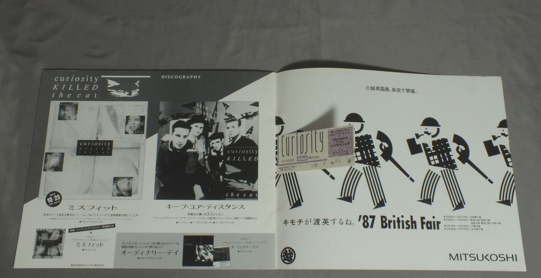 CURIOSITY KILLED THE CATキュリオシティ・キルド・ザ・キャット/JAPAN TOUR 1987 PROGRAM w/STUB日本公演1987 半券付 外観:EX 価格(税込):¥770 送料 7inch:定形外郵便 360円~LP:定形外郵便 660円~送料は、注文の最終画面で確認頂けます。 > > CURIOSITY KILLED THE CAT/JAPAN TOUR 1987 PROGRAM w/STUB 外観 (EX)特記事項:半券付。裏表紙の内側に糊付されています。背にヨレシワ有り。ヨレ軽く有り。外観EXの共通説明:ダメージが限定的。中古品としては保存状態がよい方。シミ、ヨゴレ、スレ 少し~軽度。 Tweet それぞれの画像をクリックすると、大きい写真が見られます こちらの商品もお勧めです 11,000円 POWER STATION / DANCING IN THE STREET ( LIVE AT UNIVERSAL AMPITI THEATRE USA JULY 28th 1985 )
