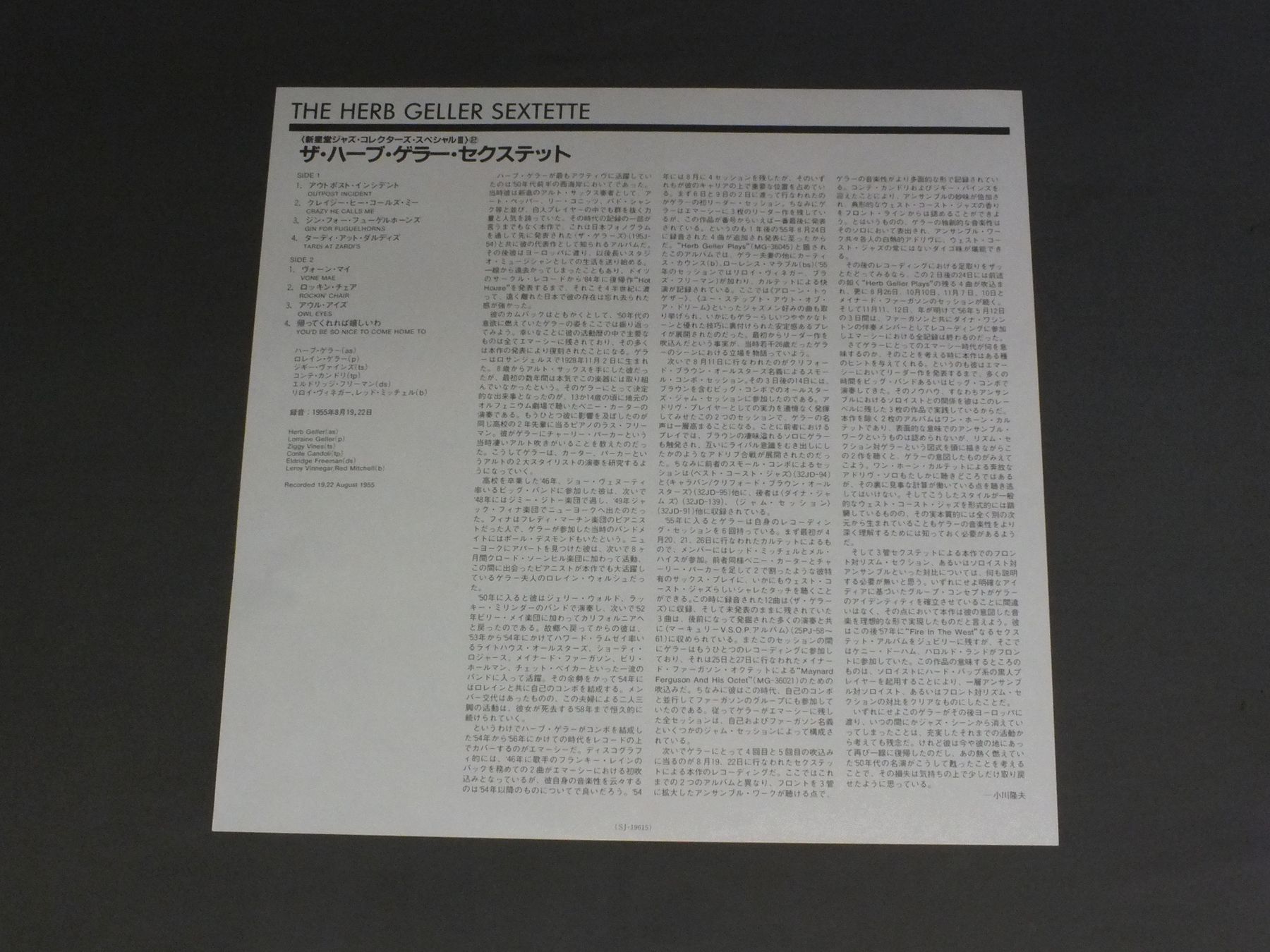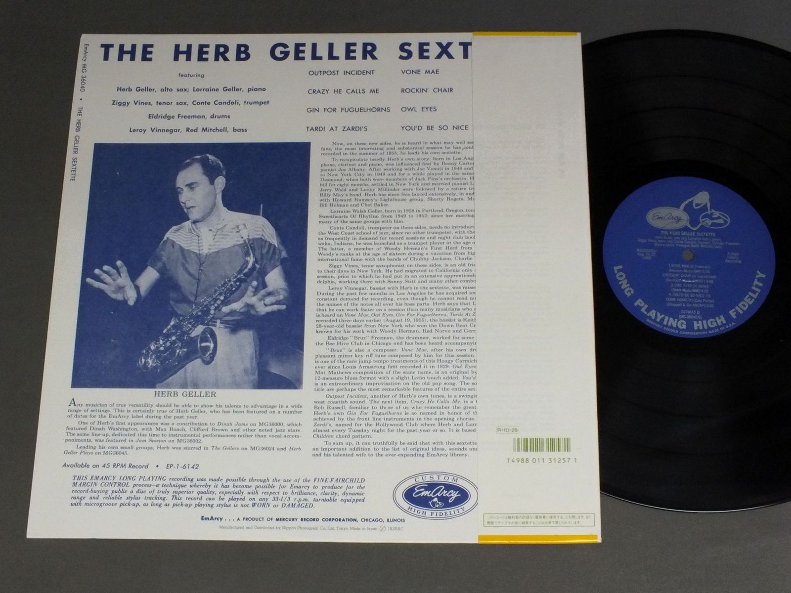 HERB GELLER SEXTETTEハーブ・ゲラー・セクステット/HERB GELLER SEXTETTEハーブ・ゲラー・セクステット MG36040 製造国:日本盤 / Media:LP外観:EX+盤の状態:EX+帯:EX+ 価格(税込):¥1,650(売約済) 送料 7inch:定形外郵便 360円~LP:定形外郵便 660円~送料は、注文の最終画面で確認頂けます。 > > HERB GELLER SEXTETTE/HERB GELLER SEXTETTE 外観 (EX+)特記事項:特記なし。外観EX+の共通説明:中古としては美品、一見してきれいでダメージが軽微。シミ、ヨゴレ、スレ有っても僅か~少し。 盤の状態 (EX+)特記事項:極薄いスリキズ・スレ少し。一見してきれいな状態です。盤EX+の共通説明:盤面の極薄いスリキズ、スレ少し程度 音に出そうなものは無いように見える(極軽微なソフトティック音は除く)。 帯の状態 (EX+):特記なし。 Tweet それぞれの画像をクリックすると、大きい写真が見られます こちらの商品もお勧めです 990円 BILL HOLMANビル・ホルマン / BIG BAND IN A JAZZ ORBITビッグ・バンド・イン・ア・ジャズ・オービット 660円 JACQUES LOUSSIERジャック・ルーシエ・トリオ / PLAY BACH VOL.4プレイ・バッハ 第4集 770円 TOSHIYUKI ICHIMURA市村俊幸 / MY LIFE MY PIANO 440円 GARY BURTON - SONNY ROLLINS - CLARK TERRYG.バートン - S.ロリンズ - C.テリー / 3 IN JAZZスリー・イン・ジャズ 1,650円 MASARU IMADA今田勝 / DAY IN THE PARADISEコーラルの涙 2,640円 EDDIE CONDON ALL STARSエディ・コンドン・オール・スターズ / EDDIE CONDON ALL STARS 1945 5LP BOX SETエディ・コンドン・オール・スターズ1945 5枚組 1,210円 WOODY HERMANウディ・ハーマン / SECOND HERDセカンド・ハード 1,320円 THE QUINTETパーカー - ガレスピー - パウエル - ローチ - ミンガス / JAZZ AT MASSEY HALLジャズ・アット・マッセイ・ホール