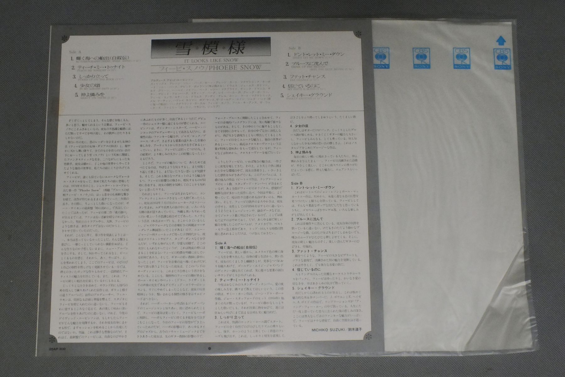 PHOEBE SNOWフィビー・スノウ/IT LOOKS LIKE SNOW雪模様 25AP 300 製造国:日本盤 / Media:LP外観:EX盤の状態:EX 価格(税込):¥770(売約済) 送料 7inch:定形外郵便 360円~LP:定形外郵便 660円~送料は、注文の最終画面で確認頂けます。 レコード検索 > SWING/BIG BAND > PHOEBE SNOW/IT LOOKS LIKE SNOW 外観 (EX)特記事項:特記なし。外観EXの共通説明:ダメージが限定的。中古品としては保存状態がよい方。シミ、ヨゴレ、スレ 少し~軽度。 盤の状態 (EX)特記事項:薄いスリキズ・スレ軽くある感じ。軽微なものの様子です。盤EXの共通説明:盤面のスリキズが薄いものが少し~軽度 音に出そうなものは無いように見える(軽微なソフトティック音は除く)。 Tweet それぞれの画像をクリックすると、大きい写真が見られます こちらの商品もお勧めです 770円 VERONIQUE SANSONヴェロニク・サンソン / VANCOUVER想い出 880円 DANIELE LICARIダニエル・リカーリ / DANIELE LICARI GOLDEN PRIZEダニエル・リカーリ・ゴールデン・プライズ 770円 OLIVIA NEWTON-JOHNオリビア・ニュートン・ジョン / PHYSICAL虹色の扉 1,320円 PAT BENATARパット・べネター / LIVE FROM EARTHライブ・フロム・アース 770円 MARILYN MARTINマリリン・マーティン / MARILYN MARTINマリリン・マーティン 1,210円 EMMYLOU HARRISエミール・ハリス / CIMARRONテネシー・ワルツ 880円 ORIVIA NEWTON-JOHNオリビア・ニュートン・ジョン / DON`T STOP BELIEVIN`たそがれの恋 1,320円 CYNDI LAUPERシンディ・ローパー / TRUE COLORSトゥルー・カラーズ