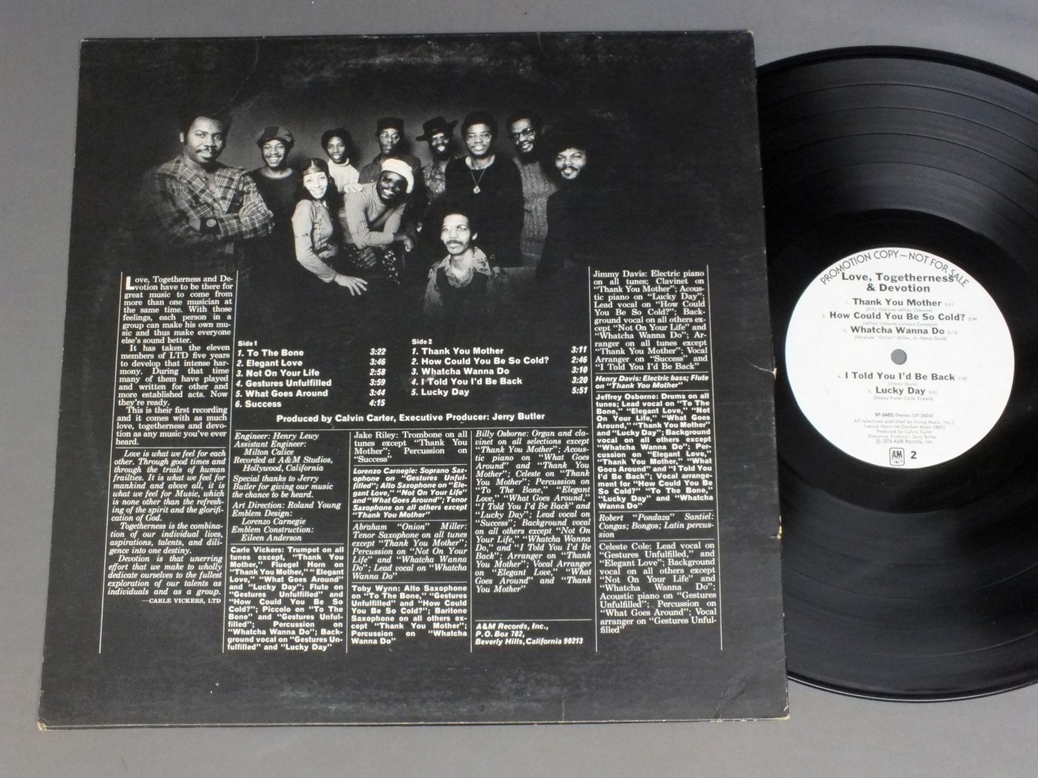 LOVE TOGETHERNESS & DEVOTION/LOVE TOGETHERNESS & DEVOTION SP3602 製造国:米国盤 / Media:LP外観:EX-盤の状態:EX 価格(税込):¥1,100(売約済) 送料 7inch:定形外郵便 360円~LP:定形外郵便 660円~送料は、注文の最終画面で確認頂けます。 > > LOVE TOGETHERNESS & DEVOTION/LOVE TOGETHERNESS & DEVOTION 外観 (EX-)特記事項:背スレやヘリスレ。レコードリングスレ有り。インナー両サイド抜け。外観EX-の共通説明:ダメージ軽度~多少。 中古品としては普通の状態。シミ、ヨゴレ、スレなど軽く~多少。 盤の状態 (EX)特記事項:薄いスリキズ・スレ軽くある感じ。軽微なものの様子です。盤EXの共通説明:盤面のスリキズが薄いものが少し~軽度 音に出そうなものは無いように見える(軽微なソフトティック音は除く)。 Tweet それぞれの画像をクリックすると、大きい写真が見られます こちらの商品もお勧めです 1,100円 PLATERS / ENCORE OF GOLDEN HITS 880円 FOUR TOPS / TONIGHT 1,100円 GARRYGLENN / FEELS GOOD TO FEEL GOOD 1,100円 SMOKEY ROBINSON / ONE HEARTBEAT 1,320円 FOUR TOPS / INDESTRUCTIBLE 1,320円 ATLANTIC STARR / WE`RE MOVIN`UP 1,870円 CHURCH STREET FIVE / NITE WITH DADDY G 1,100円 ASHFORD & SIMPSON / REAL LOVE