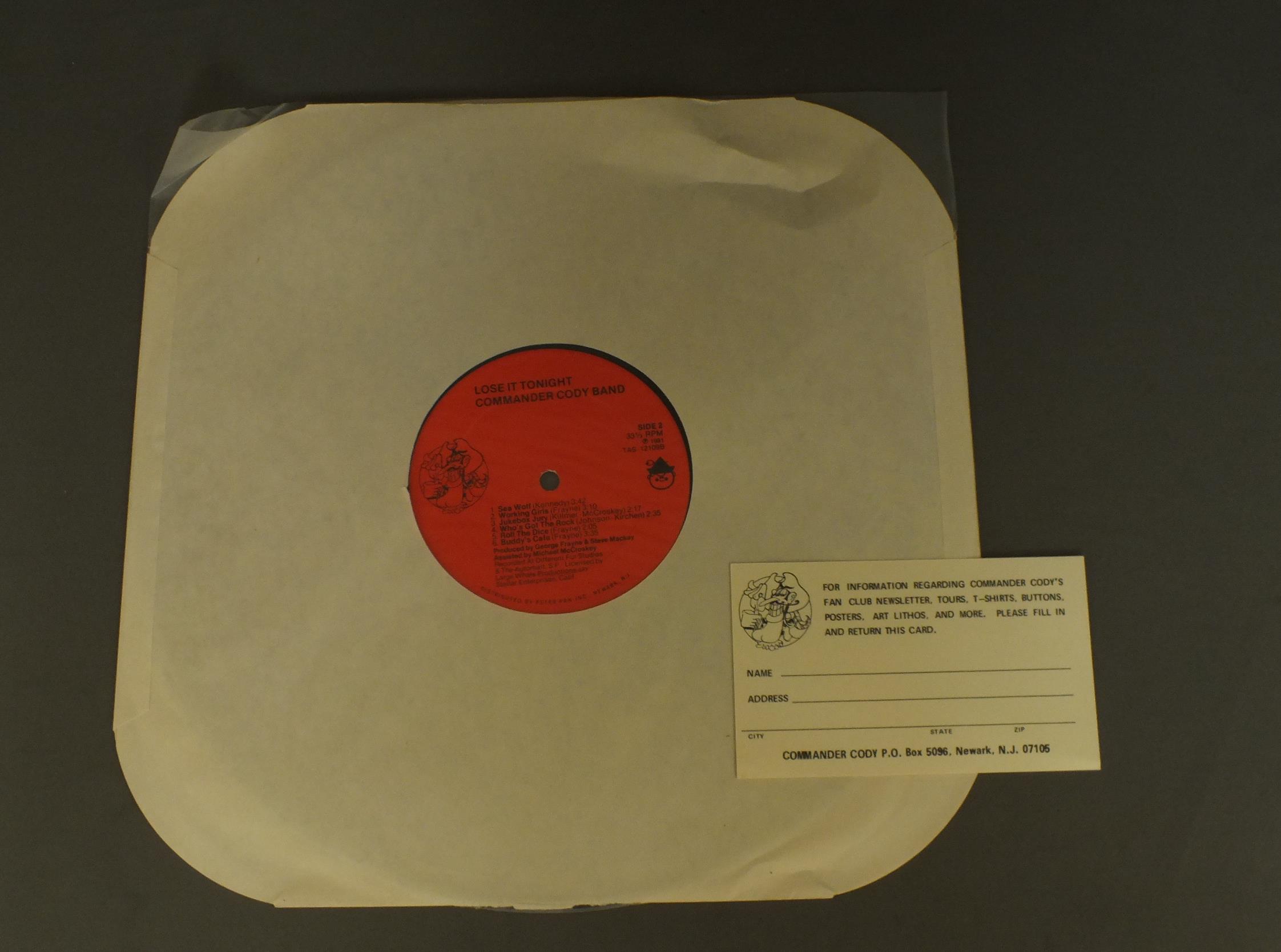 COMMANDER CODY BAND/LOSE IT TONIGHT TAS12109 製造国:米国盤 / Media:LP外観:EX盤の状態:EX 価格(税込):¥1,320(売約済) 送料 7inch:定形外郵便 360円~LP:定形外郵便 660円~送料は、注文の最終画面で確認頂けます。 > > COMMANDER CODY BAND/LOSE IT TONIGHT 外観 (EX)特記事項:特記なし。外観EXの共通説明:ダメージが限定的。中古品としては保存状態がよい方。シミ、ヨゴレ、スレ 少し~軽度。 盤の状態 (EX)特記事項:薄いスリキズ・スレ軽くある感じ。軽微なものの様子です。盤EXの共通説明:盤面のスリキズが薄いものが少し~軽度 音に出そうなものは無いように見える(軽微なソフトティック音は除く)。 Tweet それぞれの画像をクリックすると、大きい写真が見られます こちらの商品もお勧めです 1,980円 PRISONSHAKE / ROARING THIRD 440円 STEEL BREEZE / STEEL BREEZE 1,100円 COOLIES / COOLIES PRESENTS DOUG 770円 CLASSIX NOUVEAUX / CLASSIX NOUVEAUX 880円 PRECIOUS WAX DRIPPINGS / AFTER HISTORY 990円 RAJ QUARTET / WHOOPS !WHAT A PALAVER !EL レーベル 1,100円 YEAH JAZZ / SIX LANE ENDS 1,650円 SAD CAFE / FACADES BLUE VINYLFACADES 青盤