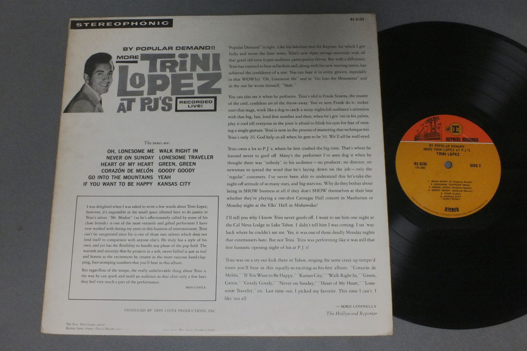 TRINI LOPEZ/BY POPULAR DEMAND MORE TRINI LOPEZ AT PJ `S RS-6103 製造国:米国盤 / Media:LP外観:EX盤の状態:EX- 価格(税込):¥880(売約済) 送料 7inch:定形外郵便 360円~LP:定形外郵便 660円~送料は、注文の最終画面で確認頂けます。 > > TRINI LOPEZ/BY POPULAR DEMAND MORE TRINI LOPEZ AT PJ `S 外観 (EX)特記事項:特記なし。外観EXの共通説明:ダメージが限定的。中古品としては保存状態がよい方。シミ、ヨゴレ、スレ 少し~軽度。 盤の状態 (EX-)特記事項:薄いスリキズ・細かい表面スレ多少ある感じです。プチ出そうな所は少し。軽微なものが中心の様子です。盤EX-の共通説明:盤面のスリキズが多少有り。音に出そうなものは殆ど無いように見える~さほど気にならないぐらいの軽いプチ数カ所程度。 Tweet それぞれの画像をクリックすると、大きい写真が見られます こちらの商品もお勧めです 1,540円 DAVID McCALLUM / MUSIC-A PART OF ME 770円 JOHN MILES / MORE MILES PER HOUR 1,320円 PIERRE BACHELET / OLYMPIA 1986 770円 PAUL DAVIS / PAUL DAVIS 770円 GILBERT BECAUD / LE DISQUE D`OR DE GILBERT BECAUD 770円 DON HENLEY / I CAN`T STAND STILL 440円 JOHN DAVIDSON / MY BEST TO YOU 1,650円 NILSSON / DUINT ON MON DEI