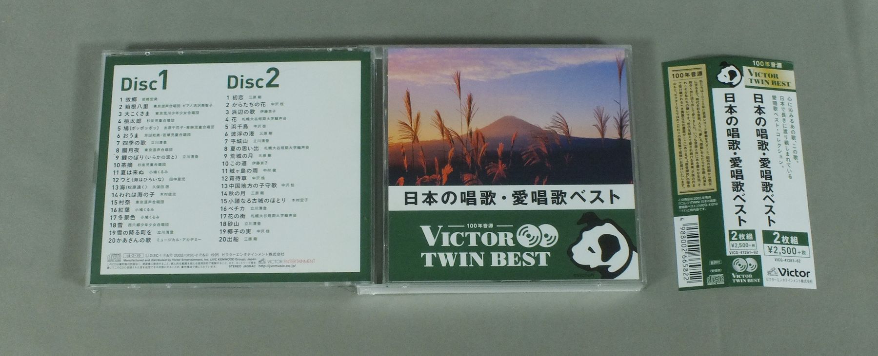 岩崎宏美/立川清登 他/JAPANESE TRADITIONAL SONGS日本の唱歌・愛唱歌ベスト VICG41261-62 製造国:日本盤 / Media:CD外観:EX盤の状態:EX+帯:EX+ 価格(税込):¥1,650 送料 7inch:定形外郵便 360円~LP:定形外郵便 660円~送料は、注文の最終画面で確認頂けます。 > > /JAPANESE TRADITIONAL SONGS 外観 (EX)特記事項:ケースは、スレやスリキズが少し。ブックレットはヨレ、スレ少々。ヨゴレなども少しだけできれいな感じです。外観EXの共通説明:ダメージが限定的。中古品としては保存状態がよい方。シミ、ヨゴレ、スレ 少し~軽度。 盤の状態 (EX+)特記事項:2枚組。2枚共、微細なスリキズが少々。きれいな感じの盤面です。盤EX+の共通説明:盤面の極薄いスリキズ、スレ少し程度 音に出そうなものは無いように見える(極軽微なソフトティック音は除く)。 帯の状態 (EX+):あまりヨレやよごれ等は無い感じ。 Tweet それぞれの画像をクリックすると、大きい写真が見られます こちらの商品もお勧めです 990円 CANDIESキャンディーズ / THE BEST
