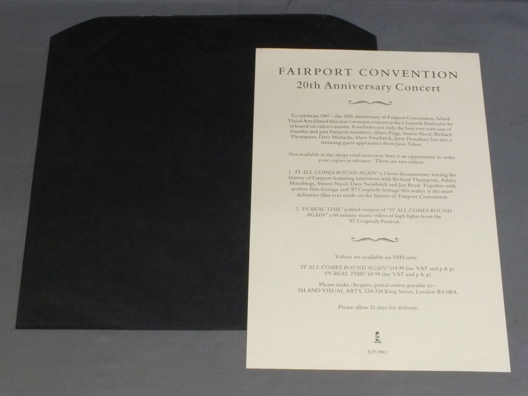 FAIRPORT CONVENTION/IN REAL TIME / LIVE 87 ILPS9883 製造国:英国盤 / Media:LP外観:EX盤の状態:EX+ 価格(税込):¥2,200(売約済) 送料 7inch:定形外郵便 360円~LP:定形外郵便 660円~送料は、注文の最終画面で確認頂けます。 > > FAIRPORT CONVENTION/IN REAL TIME / LIVE 87 外観 (EX)特記事項:多少薄いスレよごれ軽は有る感じですが、ジャケ表面は全体的にスレやスリキズ、よごれ等は少ない感じ。外観EXの共通説明:ダメージが限定的。中古品としては保存状態がよい方。シミ、ヨゴレ、スレ 少し~軽度。 盤の状態 (EX+)特記事項:あまりスリキズ無く一見してきれいな感じの盤。盤EX+の共通説明:盤面の極薄いスリキズ、スレ少し程度 音に出そうなものは無いように見える(極軽微なソフトティック音は除く)。 その他:87年夏のライブ。アナログ盤は時期的に貴重。 Tweet それぞれの画像をクリックすると、大きい写真が見られます こちらの商品もお勧めです 550円 RICK WAKEMAN / JOURNEY TO THE CENTRE OF THE EARTH 440円 TIME MACHINE / PROJECT:TIME SCANNING PIC DISC 3,300円 PETER GABRIEL / IV 990円 JETHRO TULL / `M U` BEST OF JETHRO TULL 2,200円 ROXY MUSIC / BETTER THAN FOOD ( BBC BROADCAST 1972 & LIVE 1974 ) 2,420円 ASIA / ONLY TIME WILL TELL ( LIVE IN PHILADELHIA USA 1982 ) UNOFFICIAL RELEASE 4,400円 MOVE / CALIFORNIA MAN 1,320円 EMARSON LAKE & PALMER / TARUKUS
