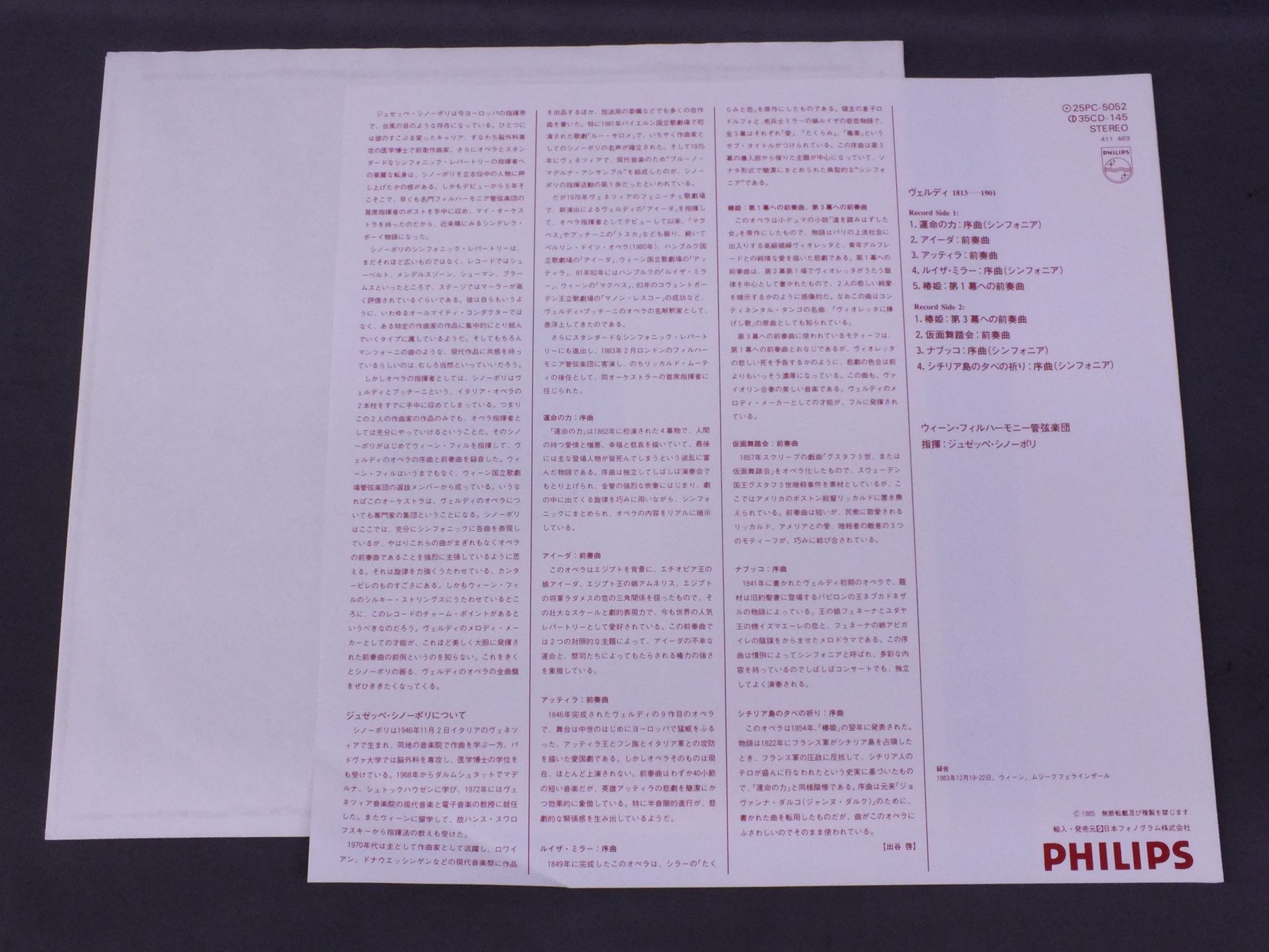 SINOPOLIシノーポリ/VERDI/OVERTURESヴェルディ序曲集 25PC5052 製造国:欧州共通盤 / Media:LP外観:EX+盤の状態:EX+ 価格(税込):¥1,320(売約済) 送料 7inch:定形外郵便 360円~LP:定形外郵便 660円~送料は、注文の最終画面で確認頂けます。 > > SINOPOLI/VERDI/OVERTURES 外観 (EX+)特記事項:特記なし。外観EX+の共通説明:中古としては美品、一見してきれいでダメージが軽微。シミ、ヨゴレ、スレ有っても僅か~少し。 盤の状態 (EX+)特記事項:極薄いスリキズ・スレ少し。一見してきれいな状態です。盤EX+の共通説明:盤面の極薄いスリキズ、スレ少し程度 音に出そうなものは無いように見える(極軽微なソフトティック音は除く)。 Tweet それぞれの画像をクリックすると、大きい写真が見られます こちらの商品もお勧めです 990円 ORMANDYオーマンディ / TCHAIKOVSKY WALTZES 1,320円 BOULT / HOLST-THE PERFECT FOOL BALLET SUITE 1,320円 ORMANDY - THE PHILADELPHIA ORCHESTRA / TCHAIKOVSKY - SYMPHONY NO.6 1,320円 SOLTI - CHICAGO SYMPHONY ORCHESTRA / WAGNER - OVERTURES 1,210円 MUNCH - BOSTON SYM. / PROKOFIEFF - ROMEO&JULIET 8,800円 C.HASKIL - SWOBODA / BEETHOVEN - PIANO CONC. 1,430円 LUDMILLA LEGOSTAYEVA SAMUEL SAMOSUD / PROKOFIEFF ALEXANDER NEVSKY 990円 ALCEO GALLIERA / VERDI-OVERTURES&PLELUDES