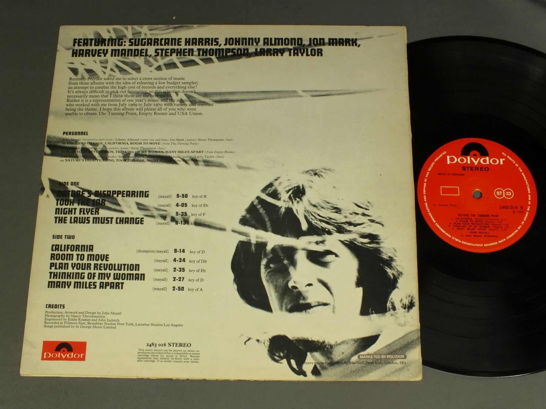 JOHN MAYALL/BEYOND THE TURNING POINT 2483 016 製造国:英国盤 / Media:LP外観:EX盤の状態:EX+ 価格(税込):¥1,760(売約済) 送料 7inch:定形外郵便 360円~LP:定形外郵便 660円~送料は、注文の最終画面で確認頂けます。 > > JOHN MAYALL/BEYOND THE TURNING POINT 外観 (EX)特記事項:ヘリスレ多少有り。ジャケ表面にも薄めのスレやよごれ少し有る感じ。外観EXの共通説明:ダメージが限定的。中古品としては保存状態がよい方。シミ、ヨゴレ、スレ 少し~軽度。 盤の状態 (EX+)特記事項:ほとんどスリキズ無くきれいな状態。盤EX+の共通説明:盤面の極薄いスリキズ、スレ少し程度 音に出そうなものは無いように見える(極軽微なソフトティック音は除く)。 その他:初回レーベル Tweet それぞれの画像をクリックすると、大きい写真が見られます こちらの商品もお勧めです 550円 VARIOUS ARTISTS / LADIES GET THE BLUES 550円 ETTORE ZEPPEGNO / GOOD TIME FLAT BLUES STOMPS & OTHERS 1,320円 HI TIDE HARRIS BLUES BAND / LIVE AT ASPEN GLOW 1,320円 B.B.KING / INCREDIBLE SOUL OF B.B.KING