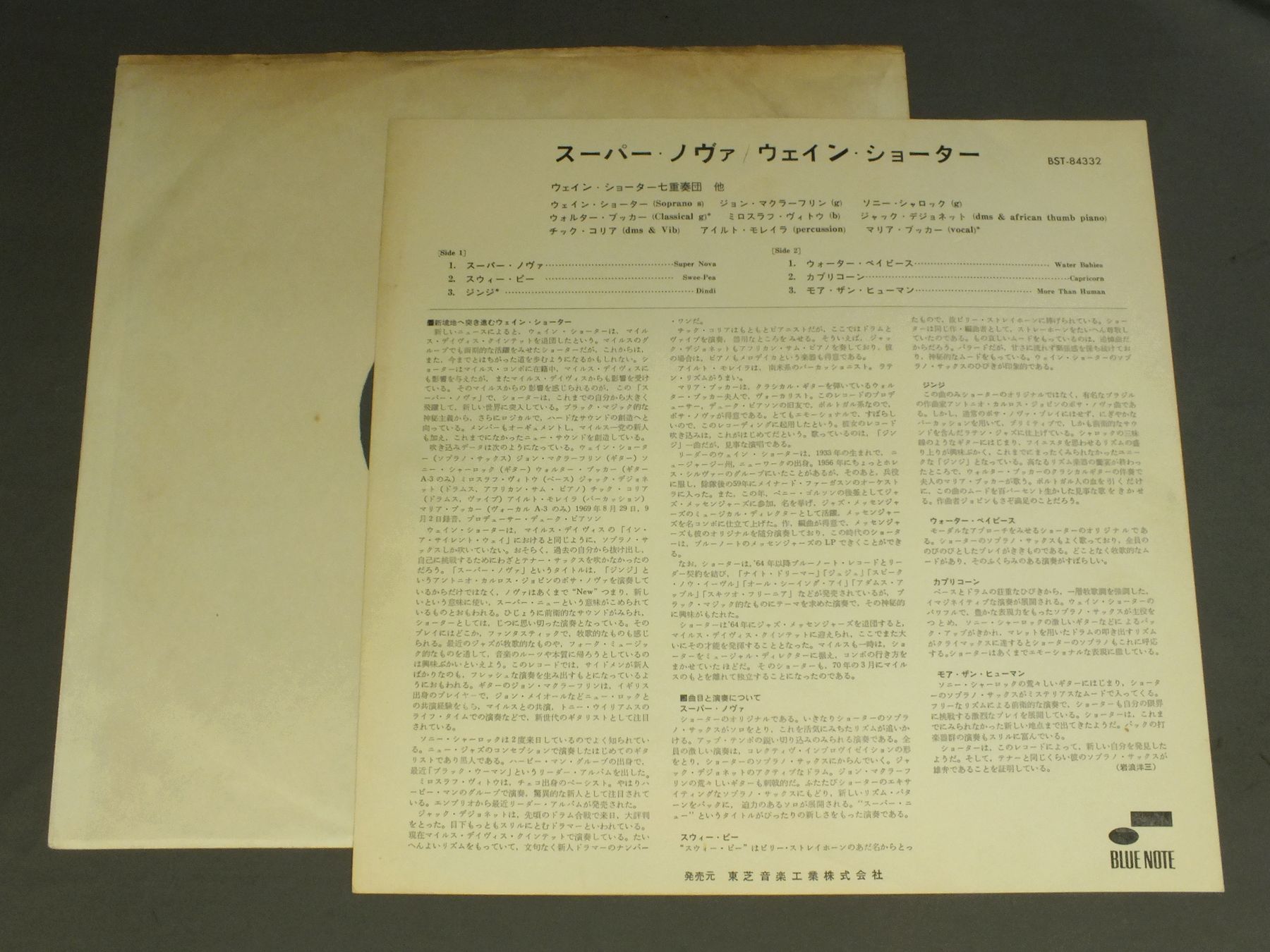 WAYNE SHOTER/SUPER NOVALIVERTY盤 BST84332 製造国:米国盤 / Media:LP外観:EX-盤の状態:EX-帯:EX 価格(税込):¥2,640(売約済) 送料 7inch:定形外郵便 360円~LP:定形外郵便 660円~送料は、注文の最終画面で確認頂けます。 > > WAYNE SHOTER/SUPER NOVA 外観 (EX-)特記事項:直輸入盤。日本語解説付。裏ジャケ側にシミ。外観EX-の共通説明:ダメージ軽度~多少。 中古品としては普通の状態。シミ、ヨゴレ、スレなど軽く~多少。 盤の状態 (EX-)特記事項:スプレー跡有りますが、聴いた感じでは音には影響は内容です。薄いスリキズが少し。盤EX-の共通説明:盤面のスリキズが多少有り。音に出そうなものは殆ど無いように見える~さほど気にならないぐらいの軽いプチ数カ所程度。 帯の状態 (EX):特記なし。 Tweet それぞれの画像をクリックすると、大きい写真が見られます こちらの商品もお勧めです 990円 GILLESPLE-GREEN-GETZ etc / BEST OF NEWPORT IN NEW YORK `72 VOL2 990円 CLANCY HAYES / SWINGIN` MINSTREL AUTOGRAPHED ( RALPH SUTTON )SWINGIN` MINSTREL (RALPH SUTTON サイン付) 1,320円 LEON SASH TRIO / I REMEMBER NEWPORT 770円 BENNY CARTER / `SKYLINE DRIVE` 770円 DOC EVANS / DOC EVANS DIXIELAND CONCERT VOL2 1,650円 WES MONTGOMERYウェス・モンゴメリー / CALIFORNIA DREAMING夢のカリフォルニア 1,320円 RALPH SUTTON / BIX BEIDERBECKE SUITE AUTOGRAPHEDBIX BEIDERBECKE SUITE サイン付 1,650円 EDDY DUCHIN / GREAT EDDY DUCHIN
