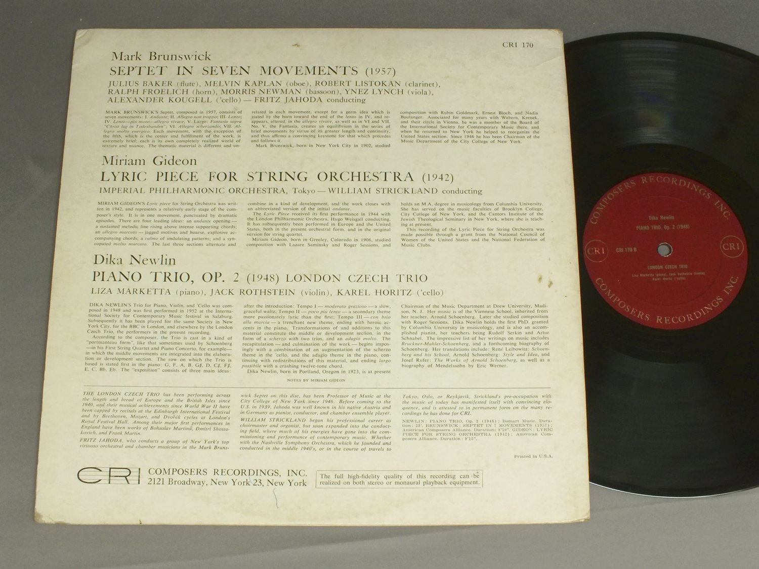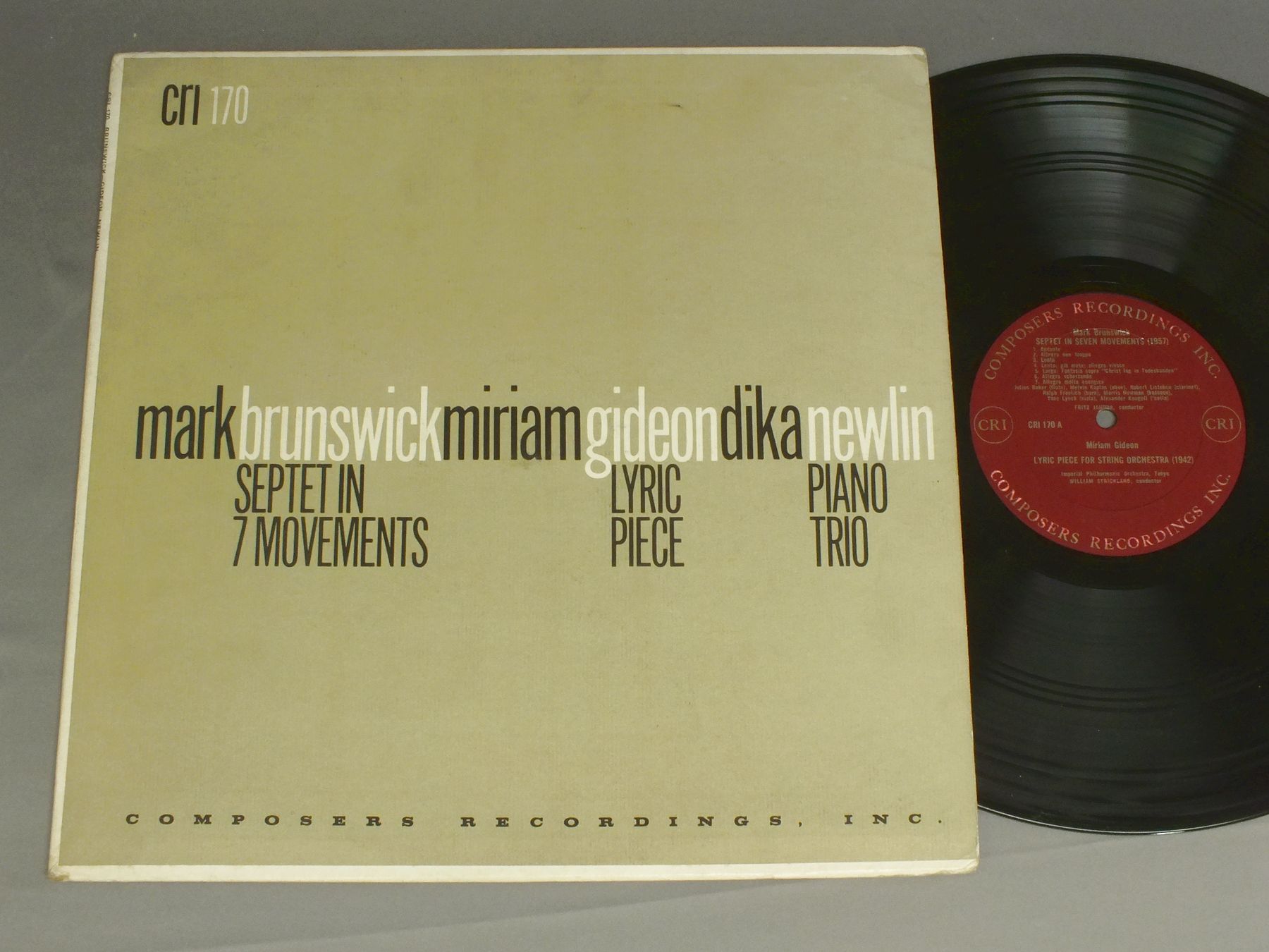 BRUNSWICK Septet/GIDEON Lyric Piece / NEWLIN Piano Trio CRI170 製造国:米国盤 / Media:LP外観:EX盤の状態:EX+ 価格(税込):¥770(売約済) 送料 7inch:定形外郵便 360円~LP:定形外郵便 660円~送料は、注文の最終画面で確認頂けます。 > > BRUNSWICK Septet/GIDEON Lyric Piece / NEWLIN Piano Trio 外観 (EX)特記事項:表裏ジャケ共にスレよごれ等よごれ多少有り。外観EXの共通説明:ダメージが限定的。中古品としては保存状態がよい方。シミ、ヨゴレ、スレ 少し~軽度。 盤の状態 (EX+)特記事項:薄いスリキズ・スレ少し。一見してきれいな状態です。盤EX+の共通説明:盤面の極薄いスリキズ、スレ少し程度 音に出そうなものは無いように見える(極軽微なソフトティック音は除く)。 Tweet それぞれの画像をクリックすると、大きい写真が見られます こちらの商品もお勧めです 1,760円 NED ROREMネッド・ロアム / POEMS OF LOVE & THE RAIN-SECOND PIANO SONATA 1,650円 BOULEZ / SCHOENBERG-SERENADE 1,540円 GIULINI / BRITTEN-SERENADE-ILLUMINATIONS 2,200円 ABBADO / BERG `LULU`SUITE ALTENBERG LIEDER THREE PIECES FOR ORCH. 2,200円 SCHONBERGアーノルト・シェーンベルク / ARNOLD SCHONBERGアーノルト・シェーンベルク 1,320円 TREIGLE-RUDEL / BOITO-MEFISTOFELEボイト メフィストフェレ 3,300円 JOSE ECHANIZ / PIANO MUSIC OF DE FALLA COMPLETE 990円 FRITZ BUSCHブッシュ / MOZART-HIGHLIGHTS FROM IDOMENEO
