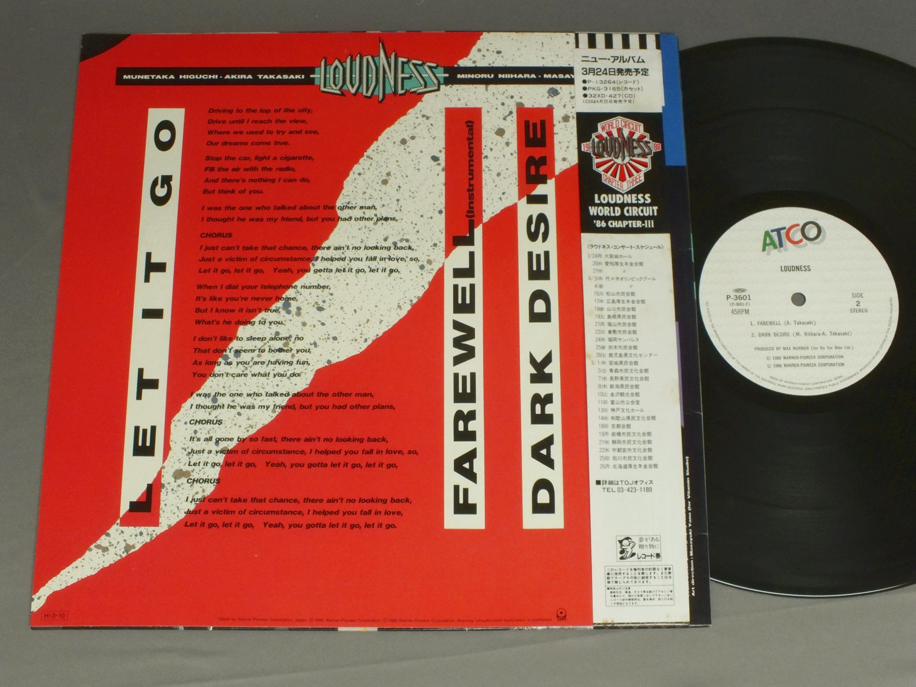 LOUDNESS/LET IT GO P-3601 製造国:日本盤 / Media:12inch外観:EX+盤の状態:EX+帯:EX 価格(税込):¥550 送料 7inch:定形外郵便 360円~LP:定形外郵便 660円~送料は、注文の最終画面で確認頂けます。 > > LOUDNESS/LET IT GO 外観 (EX+)特記事項:表面スレ、角スレも僅か。一見してとても綺麗な状態です。外観EX+の共通説明:中古としては美品、一見してきれいでダメージが軽微。シミ、ヨゴレ、スレ有っても僅か~少し。 盤の状態 (EX+)特記事項:極薄いスリキズ、スレ僅か程度。一見してとても綺麗な印象。盤EX+の共通説明:盤面の極薄いスリキズ、スレ少し程度 音に出そうなものは無いように見える(極軽微なソフトティック音は除く)。 帯の状態 (EX):裏ジャケにシミ少し。ほかはきれいな感じ。 Tweet それぞれの画像をクリックすると、大きい写真が見られます こちらの商品もお勧めです 1,210円 LOUDNESSラウドネス / RISKY WOMANリスキー・ウーマン 1,320円 KERAケラ / RECORD PIC DISCピクチャー盤 3,300円 GASTUNK / VANISHING SIGNS 1,320円 COOLSクールス / COOLS LIVE VOLUME 2クールス・ライヴVOL 2 770円 CAROLキャロル / CAROL FIRSTキャロル・ファースト 990円 COOLSクールス / COOLS ROCKABILLY CLUBクールス・ロカビリー・クラブ 1,650円 NICOTINEニコチン / CARNIVAL未開封 1,320円 EARTH SHAKER / OVER RUN w/POST CARDS