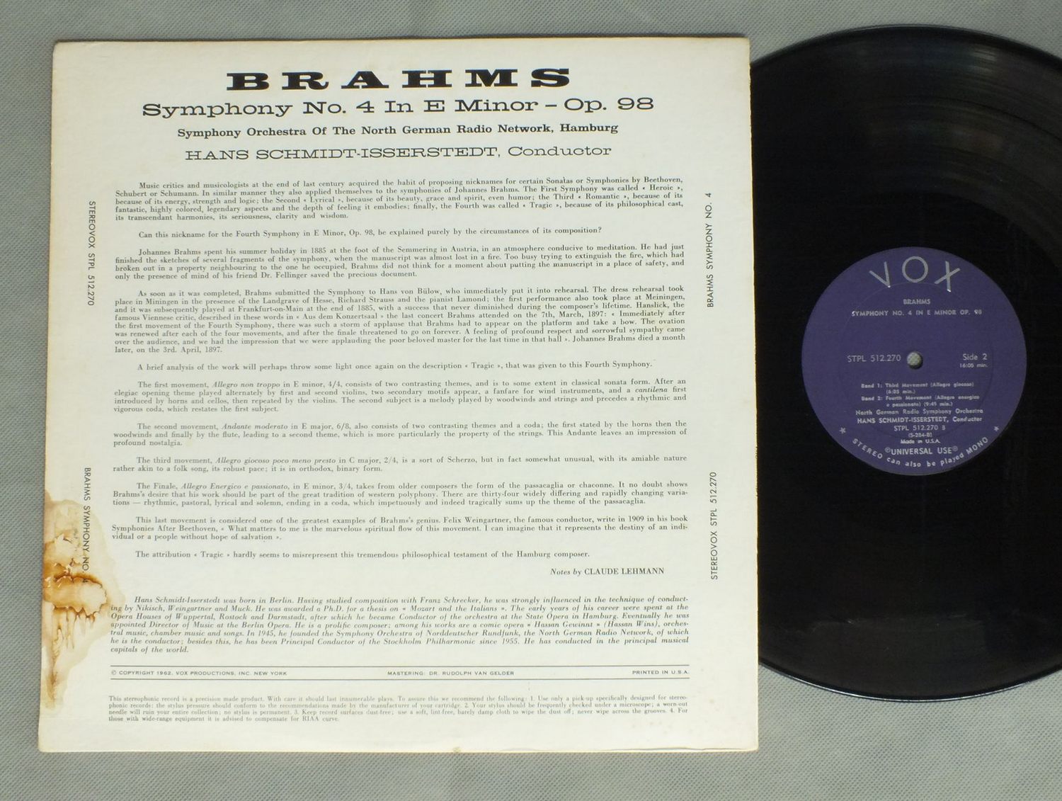 HANS SCHMIDT-ISSERSTEDT/BRAHMS/SYM. NO4 STPL512.270 製造国:米国盤 / Media:LP外観:VG盤の状態:EX- 価格(税込):¥1,320(売約済) 送料 7inch:定形外郵便 360円~LP:定形外郵便 660円~送料は、注文の最終画面で確認頂けます。 レコード検索 > > HANS SCHMIDT-ISSERSTEDT/BRAHMS/SYM. NO4 外観 (VG)特記事項:ジャケによごれ有り。外観VGの共通説明:ダメージが見るからに多い。 盤の状態 (EX-)特記事項:薄いスリキズ・細かい表面スレ軽くある感じです。プチ出そうな所は少し。軽微なものが中心の様子です。盤EX-の共通説明:盤面のスリキズが多少有り。音に出そうなものは殆ど無いように見える~さほど気にならないぐらいの軽いプチ数カ所程度。 Tweet それぞれの画像をクリックすると、大きい写真が見られます こちらの商品もお勧めです 2,860円 SOLTI - VIENNA PHIL. / RICHARRD STRAUSS - ARAELLA ( COMPLETE RECORDING ) 1,980円 ANSERMET - SUISSE ROMANDE / STRAVINSKY - SYMPHONY C MAJOR 1,540円 BARBIROLLI - HALLE ORCH. / SIBELIUS - SCENES HISTORIQUES etc 2,640円 BOSTON SYMPHONY - MUNCH / BERLIOZ - DAMNATION OF FAUST 1,540円 JUSSI JALAS - HUNGARIAN STATE SYMPHONY ORCH. / SIBELIUS - TEMPEST SUITES 1 & 2 1,650円 RICHTEL - JEWGENIJ MRAWINSKIJ / TCHAIKOVSKY - KLAVIERKONZERT NR1 990円 HELMUTH RILLING / DIE HIMMEL ERZAHLEN DIE EHRE GOTTES 2,860円 FRANK PETER ZIMMERMANN / MOZART VIOLIN CONC