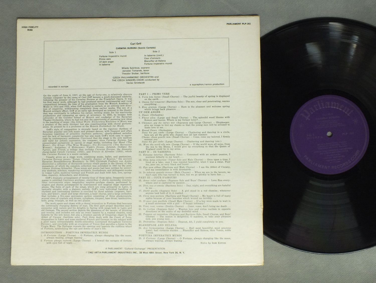 VACLAV SMETACEK/ORFF - CARMINA BURANA PLP161 製造国:米国盤 / Media:LP外観:EX盤の状態:EX+ 価格(税込):¥1,320(売約済) 送料 7inch:定形外郵便 360円~LP:定形外郵便 660円~送料は、注文の最終画面で確認頂けます。 レコード検索 > > VACLAV SMETACEK/ORFF - CARMINA BURANA 外観 (EX)特記事項:特記なし。外観EXの共通説明:ダメージが限定的。中古品としては保存状態がよい方。シミ、ヨゴレ、スレ 少し~軽度。 盤の状態 (EX+)特記事項:極薄いスリキズ・スレ少し。一見してきれいな状態です。盤EX+の共通説明:盤面の極薄いスリキズ、スレ少し程度 音に出そうなものは無いように見える(極軽微なソフトティック音は除く)。 Tweet それぞれの画像をクリックすると、大きい写真が見られます こちらの商品もお勧めです 1,650円 ALFRED DELLER / HENRY PURCELL-KING ARTHUR 1,430円 KOVALIOV-GAUK / WORLDS LEADING INTERPRETERS 990円 OTTILIE METZGER / COURT OPERA CLASSICS 1,320円 BAINBRIDCEバンブリッジ師 / PASSION & OSTERNACHT IN DER OSTKIRCHEロシア正教会の受難礼と復活祭 1,650円 WUNDERLICHヴンダーリッヒ / IN MEMORIAM 1,540円 DAVID ZINMAN / DVORAK KONZERT VIOLONCELLO 1,320円 JOAN SUTHERLAND / OPERATIC ARIAS 990円 VIENNA CHOR BOYS / CHILDREN`S SONGS