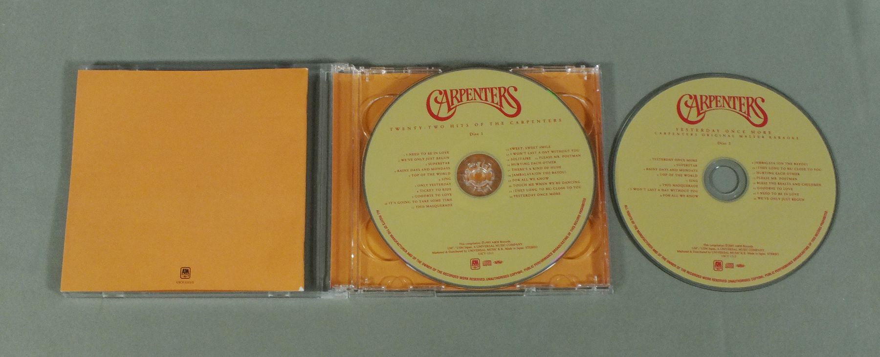 CARPENTERSカーペンターズ/TWENTY - TWO HITS OF THE CARPENTERS青春の輝き - ベスト・オブ・カーペンターズ 10周年盤 UICY1311-2 製造国:日本盤 / Media:CD外観:EX-盤の状態:EX- 価格(税込):¥2,200 送料 7inch:定形外郵便 360円~LP:定形外郵便 660円~送料は、注文の最終画面で確認頂けます。 レコード検索 > SWING/BIG BAND > CARPENTERS/TWENTY - TWO HITS OF THE CARPENTERS 外観 (EX-)特記事項:ケースは、スレやスリキズ多少有り。ブックレットは、ヨレ、スレ、シミなど小 - 軽度です。外観EX-の共通説明:ダメージ軽度~多少。 中古品としては普通の状態。シミ、ヨゴレ、スレなど軽く~多少。 盤の状態 (EX-)特記事項:2枚組。2枚共、薄いスリキズが多少盤面にありますが、軽微な感じ。再生に影響はないと思います。盤EX-の共通説明:盤面のスリキズが多少有り。音に出そうなものは殆ど無いように見える~さほど気にならないぐらいの軽いプチ数カ所程度。 その他:再生に問題がある場合は返金させて頂きます。 Tweet それぞれの画像をクリックすると、大きい写真が見られます こちらの商品もお勧めです 1,980円 JUDY COLLINSジュディ・コリンズ / BREAD & ROSESパンと薔薇の人生 1,100円 KARLA BONOFFカーラ・ボノフ / RESTLESS NIGHTSささやく夜 1,650円 KATE BUSHケイト・ブッシュ / LION HEARTライオン・ハート