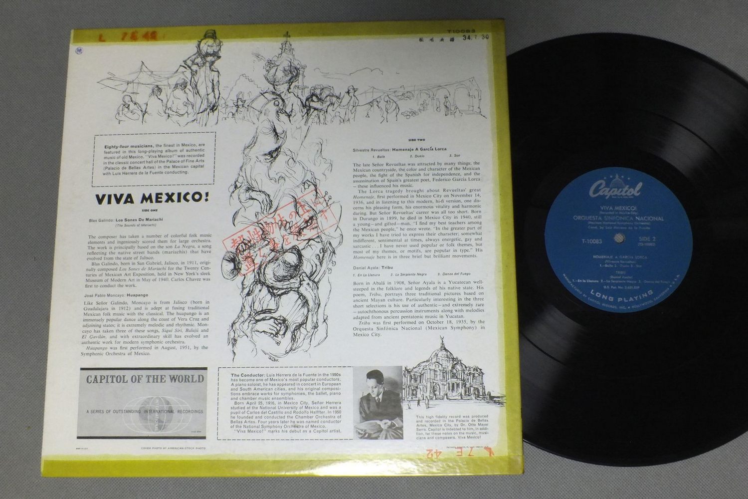 WIS HERRERA DE LA FUENTE/VIVA MEXICO! T10083 製造国:米国盤 / Media:LP外観:VG盤の状態:EX- 価格(税込):¥550(売約済) 送料 7inch:定形外郵便 360円~LP:定形外郵便 660円~送料は、注文の最終画面で確認頂けます。 > > WIS HERRERA DE LA FUENTE/VIVA MEXICO! 外観 (VG)特記事項:背やヘリにテープ。ステッカーやスタンプ有り。外観VGの共通説明:ダメージが見るからに多い。 盤の状態 (EX-)特記事項:薄いスリキズ・細かい表面スレ軽くある感じです。プチ出そうな所は少し。軽微なものが中心の様子です。盤EX-の共通説明:盤面のスリキズが多少有り。音に出そうなものは殆ど無いように見える~さほど気にならないぐらいの軽いプチ数カ所程度。 Tweet それぞれの画像をクリックすると、大きい写真が見られます こちらの商品もお勧めです 990円 PHILIP JONES EN. / SOUSA-STARS & STRIPES FOREVER 1,320円 SEGOVIA / MAESTRO 1,650円 YEPES-GITARRE / NACHTE IN SPANISCHEN GARTEN 990円 MARRINER / VIVALDI BLASERKONZERTE VOL2 1,210円 RALPH KIRKPATRICKカークパトリック / JAUCHZET GOTT IN ALEN LANDEN BWV51 990円 BAROQUE ENSEMBLE / TELEMANN-CHAMBER MUSIC 880円 RAMPAL STERN SCHNEIDER ROSE / MOZART FLUTE QUARTETS 1,320円 DANIEL BENKO EDER-QUARTETT / BOCCHERINI:GUITAR QUINTETTE NR.7&9ボッケリーニ・ギター五重奏曲