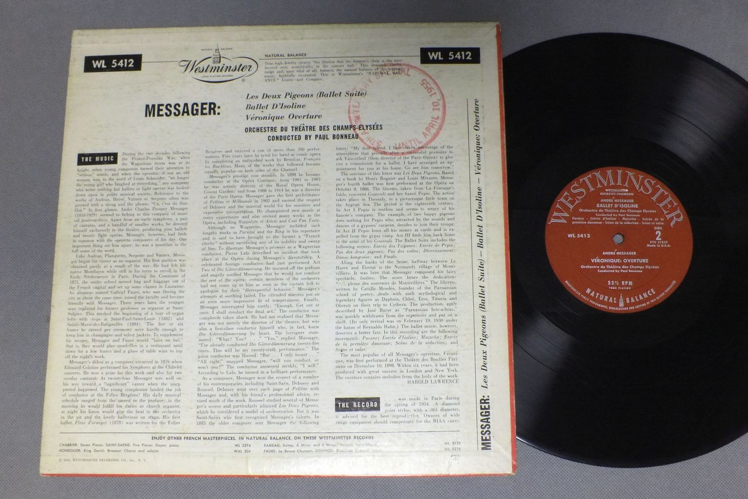 PAUL BONNEAU/ANDRE MESSAGER WL 5412 製造国:米国盤 / Media:LP外観:VG+盤の状態:EX- 価格(税込):¥3,520(売約済) 送料 7inch:定形外郵便 360円~LP:定形外郵便 660円~送料は、注文の最終画面で確認頂けます。 > > PAUL BONNEAU/ANDRE MESSAGER 外観 (VG+)特記事項:背スレやヘリスレ有り。ジャケ表面にスレやよごれ有り。外観VG+の共通説明:ダメージやや有り。シミ、ヨゴレ、スレなど多少~やや多め。 盤の状態 (EX-)特記事項:薄いスリキズ・細かい表面スレ軽くある感じです。プチ出そうな所は少し。軽微なものが中心の様子です。盤EX-の共通説明:盤面のスリキズが多少有り。音に出そうなものは殆ど無いように見える~さほど気にならないぐらいの軽いプチ数カ所程度。 Tweet それぞれの画像をクリックすると、大きい写真が見られます こちらの商品もお勧めです 1,320円 SOLTI / SOLTI CHICAGO SHOWCASE 1,650円 HORENSTEIN / DVORAK-SYM. NO9(NEW WORLD) 990円 PRITCHARD / SCHUBERT-SYM. NO9 1,320円 PAUMGARTNER / MOZART EINE KLEINE NACHTMUSIK-SYM. NR40 990円 BOULT / TONE POEMS OF SIBELIUS VOL1-LEGENDS&SAGAS 990円 PHILIPPE ENTREMONT-BERNSTEIN / TCHAIKOWSKY-CONCIERTO NO1 2,420円 BOHM / STRAUSS - ARIADNE AUF NAXOSR.シュトラウス - ナクソス島のアリアドネ 1,540円 ISSERSTEDT - VIENNA PHIL. - BACKAHUS / BEETHOVEN - PANO CONC. No1