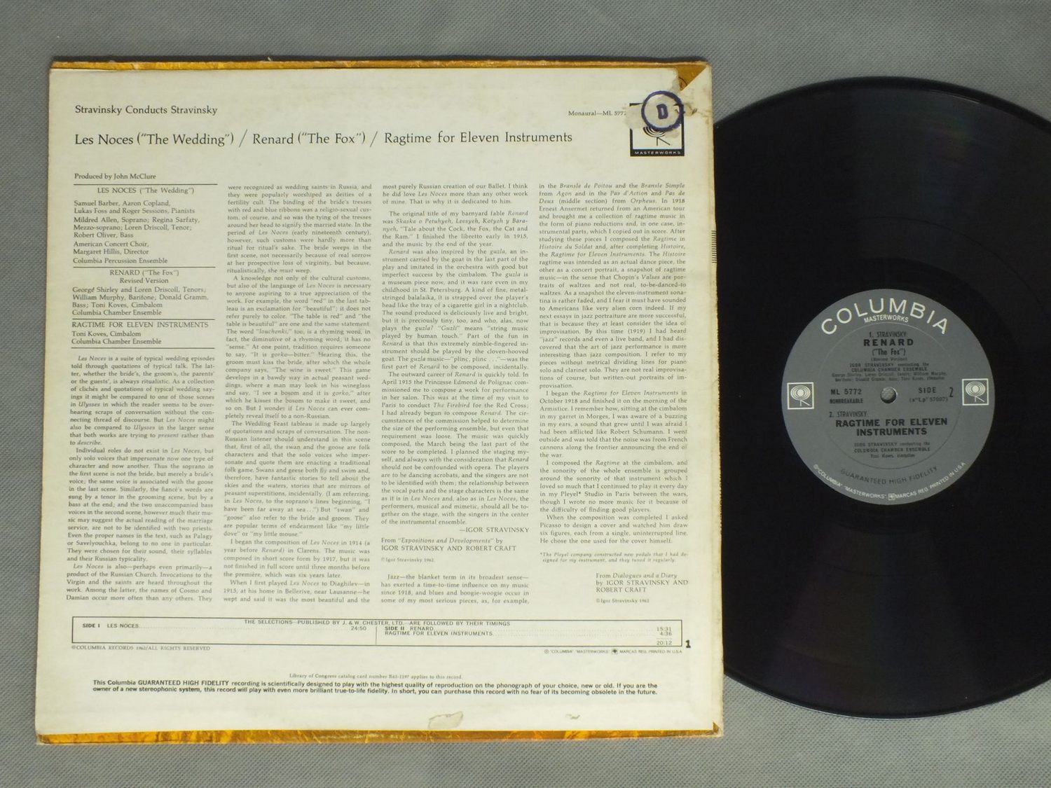 STRAVINSKY/STRAVINSKY CONDUCIS STRAVINSKY ML5772 製造国:米国盤 / Media:LP外観:VG+盤の状態:EX 価格(税込):¥1,320(売約済) 送料 7inch:定形外郵便 360円~LP:定形外郵便 660円~送料は、注文の最終画面で確認頂けます。 > > STRAVINSKY/STRAVINSKY CONDUCIS STRAVINSKY 外観 (VG+)特記事項:ヘリスレ。裏ジャケに剥がれ。レコードリングスレ有り。外観VG+の共通説明:ダメージやや有り。シミ、ヨゴレ、スレなど多少~やや多め。 盤の状態 (EX)特記事項:薄いスリキズ・スレ軽くある感じ。軽微なものの様子です。盤EXの共通説明:盤面のスリキズが薄いものが少し~軽度 音に出そうなものは無いように見える(軽微なソフトティック音は除く)。 Tweet それぞれの画像をクリックすると、大きい写真が見られます こちらの商品もお勧めです 1,320円 TOSCANINI / BEETHOVEN-SYM. 7 990円 VIENNA STATE OPERA ORCH. / ENESCO RUMANIAN RHAPSODIES 1,650円 ANSERMET / BIZET-SYM. NO1-PATRIE OVERTURE 990円 FRICSAY / KODALY PSALMUS HUNGARICUS MAROSSZEK DANCES 990円 MITROPOULOS / TCHAIKOVSKY `PATHETIQUE` SYM. 1,650円 BOULEZ / GRANDS INTERPRELES-RAVEL 1,650円 MAAZEL / OVERTUREN HI-FI IN VOL3 1,650円 MARTINON / PROKOFIEV-SYM. NO7