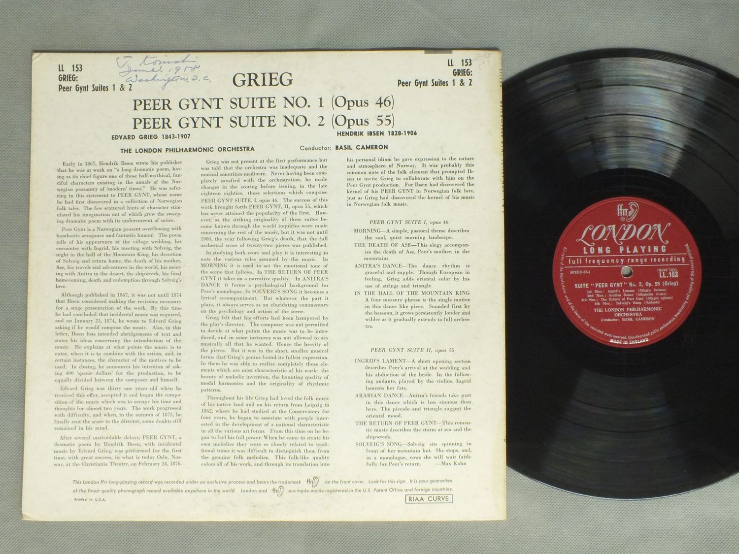BASIL CAMERON/GRIEG - PEER GYNT SUITE NO1 etc LL153 製造国:米国盤 / Media:LP外観:EX盤の状態:EX- 価格(税込):¥660(売約済) 送料 7inch:定形外郵便 360円~LP:定形外郵便 660円~送料は、注文の最終画面で確認頂けます。 > > BASIL CAMERON/GRIEG - PEER GYNT SUITE NO1 etc 外観 (EX)特記事項:裏ジャケによごれや書込み。外観EXの共通説明:ダメージが限定的。中古品としては保存状態がよい方。シミ、ヨゴレ、スレ 少し~軽度。 盤の状態 (EX-)特記事項:薄いスリキズ・細かい表面スレ軽くある感じ。全体的には殆どが軽微なものの様子です。盤EX-の共通説明:盤面のスリキズが多少有り。音に出そうなものは殆ど無いように見える~さほど気にならないぐらいの軽いプチ数カ所程度。 Tweet それぞれの画像をクリックすると、大きい写真が見られます こちらの商品もお勧めです 1,980円 MARKEVITCH / GOUNOD MESSE SOLENNELLE STE 1,320円 DORATI / RHAPSODIES BY LISZT & ENESCO 990円 FURTWANGLER / BEETHOVEN-NINTH SYM.(CHORAL) 1,210円 WALTER - COLUMBIA SYM. ORCH. / SCHUBERT - ROSEMONDE 1,430円 ROBERTO BENZI / DUKAS-PERI-L`APPRENTI SORCIER 1,760円 BOHM / MOZART SYM.N NR26 31`PARISER` 38`PRAGER` 1,320円 MUSIKKUNDE IN BEISPIELEN / NATIONALE SCHULEN DES 990円 HAMILTON HARTY / HARTY CONDUCTS ELGAR