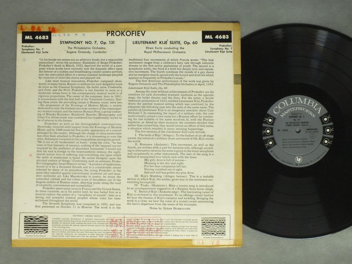 E.ORMANDY - E.KURTZ/PROKOFIEV - SYM. NO7 etc ML4683 製造国:米国盤 / Media:LP外観:VG盤の状態:EX 価格(税込):¥1,320(売約済) 送料 7inch:定形外郵便 360円~LP:定形外郵便 660円~送料は、注文の最終画面で確認頂けます。 > > E.ORMANDY - E.KURTZ/PROKOFIEV - SYM. NO7 etc 外観 (VG)特記事項:背やヘリにテープ。スタンプやスティッカー有り。外観VGの共通説明:ダメージが見るからに多い。 盤の状態 (EX)特記事項:薄いスリキズ・スレ軽くある感じ。軽微なものの様子です。盤EXの共通説明:盤面のスリキズが薄いものが少し~軽度 音に出そうなものは無いように見える(軽微なソフトティック音は除く)。 Tweet それぞれの画像をクリックすると、大きい写真が見られます こちらの商品もお勧めです 1,430円 LSO-COLLINS / SIBELIUS-SYM. NO1 1,650円 BOSKOVSKY / MOZART-COMPLETE DANCES&MARCHES VOL8 990円 WILLIAM STEINBERG / RIMSKY-KORSAKOV-LE COO D`OR 1,320円 CLEMENS KRAUSS / STRAUSS-DER BURGER ALS EDELMANN 990円 ERICH KUNZEL / OFFENBACH-GAITE PARISIENNE 1,540円 FURTWANGLER - VIENNA PHIL. / BEETHOVEN - SYM. NO4 990円 MONTEUX / STRAVINSKY SACRE DU PRINTEMPS 1,650円 BOULT / WAGNER-OUVERTURES ET PRELUDES 2