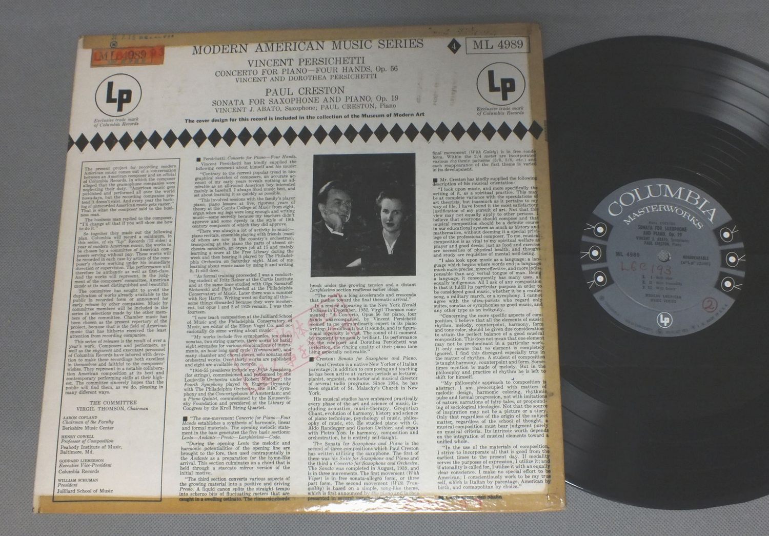 PERSICHETTI-CRESTON/VINCENT PERSICHETTI CONCERTO FOUR HANDS ML 4989 製造国:米国盤 / Media:LP外観:VG盤の状態:EX 価格(税込):¥1,320(売約済) 送料 7inch:定形外郵便 360円~LP:定形外郵便 660円~送料は、注文の最終画面で確認頂けます。 レコード検索 > ALL Genre > PERSICHETTI-CRESTON/VINCENT PERSICHETTI CONCERTO FOUR HANDS 外観 (VG)特記事項:背やヘリにテープ。ステッカーやスタンプ有り。外観VGの共通説明:ダメージが見るからに多い。 盤の状態 (EX)特記事項:薄いスリキズ・スレ軽くある感じ。殆どが軽微なものの様子です。盤EXの共通説明:盤面のスリキズが薄いものが少し~軽度 音に出そうなものは無いように見える(軽微なソフトティック音は除く)。 Tweet それぞれの画像をクリックすると、大きい写真が見られます こちらの商品もお勧めです 990円 ULSTER ORCH.-THOMSON / BAX-TONE POEMS-NOVEMBER WOODS etc. 1,430円 VILLIERS / VICTOR FENIGSTEIN 990円 G. JANOWITZ - I. GAGE / HINDEMITH - RAINER MARIA RIKE : DAS MARIENLEBEN 1,650円 SEBSTIAN CARATELLI / HINDEMITH SONATAFOR FLUTE 1,650円 ALBAN BERG / BERG VIOLINKONZERT 1,760円 JUNKO UKIGAYA/HORST GOBEL / CHANT DE LIONS 2,200円 LEIBOWITZ / SCHOENBERG/CONC. FOR PIANO AND ORCH. 2 etc 1,430円 AKEO WATANABE / ELIAS TANENBAUM/CHARLES WUORINENエリアス・タネンバウム/チャールズ・ウォリネン