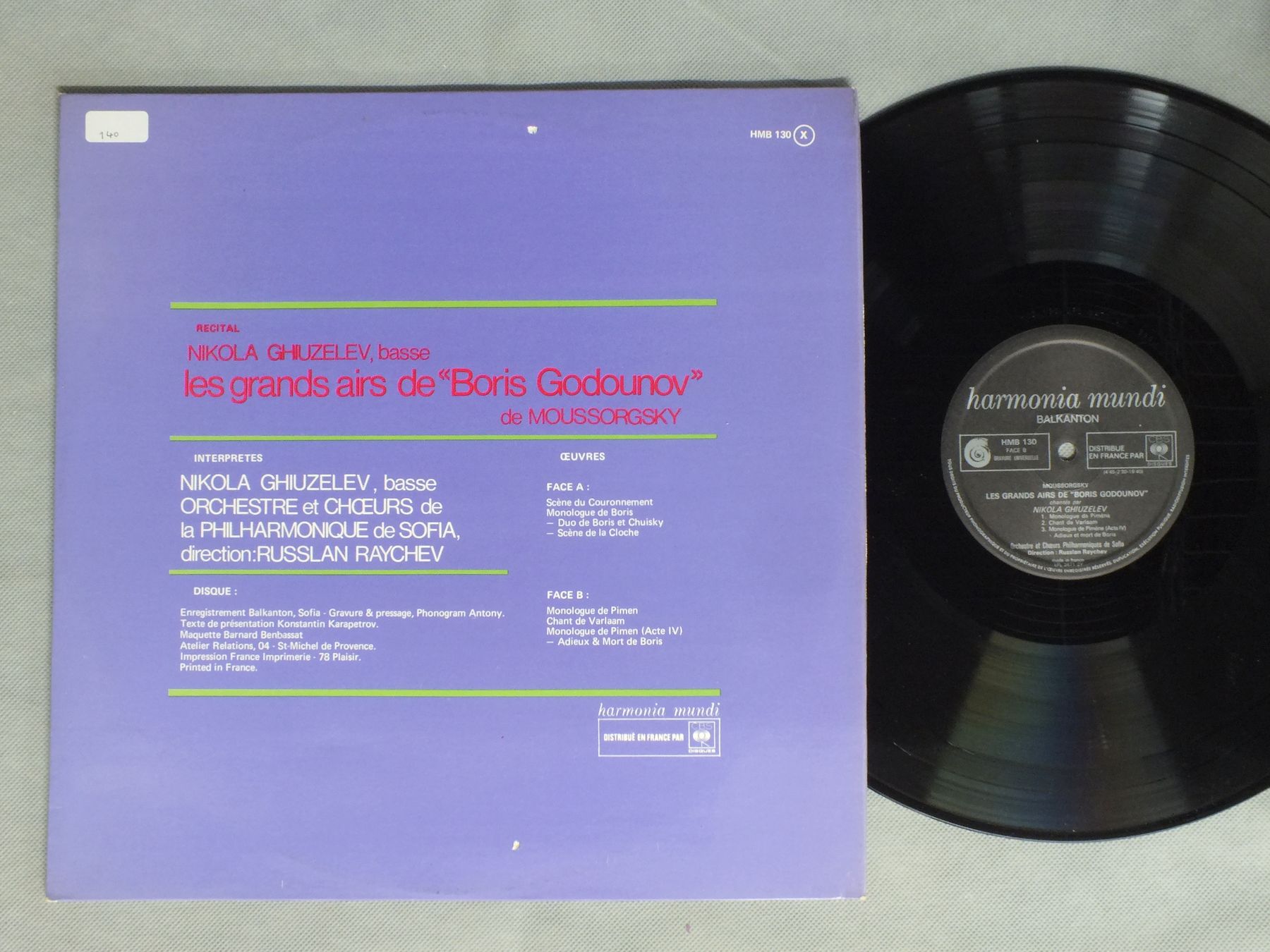 RUSSLAN RAYCHEV/LES GRANDS AIRS DE BORIS GODOUNOV DE MOUSSORGSKY HMB130 製造国:仏盤 / Media:LP外観:EX-盤の状態:EX+ 価格(税込):¥660(売約済) 送料 7inch:定形外郵便 360円~LP:定形外郵便 660円~送料は、注文の最終画面で確認頂けます。 > > RUSSLAN RAYCHEV/LES GRANDS AIRS DE BORIS GODOUNOV DE MOUSSORGSKY 外観 (EX-)特記事項:裏ジャケにキズ。外観EX-の共通説明:ダメージ軽度~多少。 中古品としては普通の状態。シミ、ヨゴレ、スレなど軽く~多少。 盤の状態 (EX+)特記事項:極薄いスリキズ・スレ少し。一見してきれいな状態です。盤EX+の共通説明:盤面の極薄いスリキズ、スレ少し程度 音に出そうなものは無いように見える(極軽微なソフトティック音は除く)。 Tweet それぞれの画像をクリックすると、大きい写真が見られます こちらの商品もお勧めです 1,320円 BENIAMINO GIGLI / ART OF BENIAMINO GIGLI VOL3 3LP BOX 1,430円 GERY LEMAIREジェリー・ルメール / JEAN-NOEL HAMAL-IN EXITU ISRAELジャン=ノエル・ハマル-IN EXITU ISRAEL 1,540円 RAYMOND LEPPARD / MONTEVERDI-MADRIGALI LIBRO 7 2,200円 JOCHUM / MOZART COSI FAN TUTTE 2,200円 SEEFRIED / AIRS. MELODIES ET LIEDER 1,650円 ELISABETH GRUMMER / BACH-JOHANNES PASSION 990円 KARL SCHEUBER / 14TH ANNUAL CHURCH MUSIC SEMINER 990円 ENSEMBLE BAROQUE DE LAUSANNE / C.MONTEVERDI-DIX MADRIGAUX