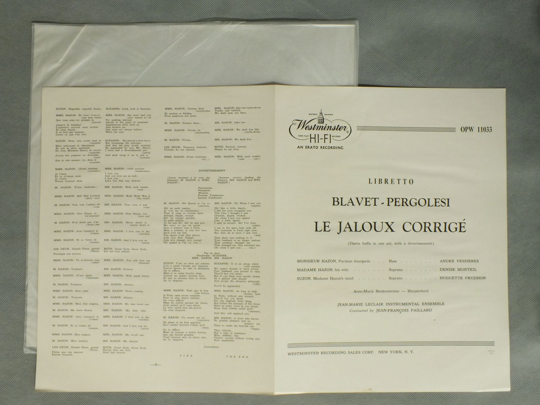 PAILLARD/PERGOLESI - LE JALOUX CORRIGE(COMPLETE) OPW11033 製造国:米国盤 / Media:LP外観:VG+盤の状態:EX 価格(税込):¥1,320(売約済) 送料 7inch:定形外郵便 360円~LP:定形外郵便 660円~送料は、注文の最終画面で確認頂けます。 > > PAILLARD/PERGOLESI - LE JALOUX CORRIGE(COMPLETE) 外観 (VG+)特記事項:背スレ有り。背とヘリにテープ。外観VG+の共通説明:ダメージやや有り。シミ、ヨゴレ、スレなど多少~やや多め。 盤の状態 (EX)特記事項:薄いスリキズ・スレ軽くある感じ。軽微なものの様子です。盤EXの共通説明:盤面のスリキズが薄いものが少し~軽度 音に出そうなものは無いように見える(軽微なソフトティック音は除く)。 Tweet それぞれの画像をクリックすると、大きい写真が見られます こちらの商品もお勧めです 1,760円 COPLEY-BERN / VIVALDI KONZERTE FUR BLOCK 1,430円 CASALS / BEETHOVEN TRIO 1,760円 BONYNGE / ROSSINI-RESPIGHI BOUTIQUE FANTASQUE 1,430円 DORA GATTA - SALVATORE GIOIA / PAISIELLO - NINA OR LA PAZZA PER AMORE 1,430円 HANS-JOACHIM ROTZSCH / BACH-KANTATEN BWV 31-66 1,540円 BOSKOVSKY - WIENER MOZART ENSEMBLE / MOZART - TANZE UND MARSCHE VOL6舞曲と行進曲 6集 990円 AMADEUS Q / MUSIKKUNDE IN BEISPIELEN FRUH 1,320円 M.ANDRE-RICCARDO MUTI / BACH-TELEMANN-TORELLI-HAYDN-CONC.