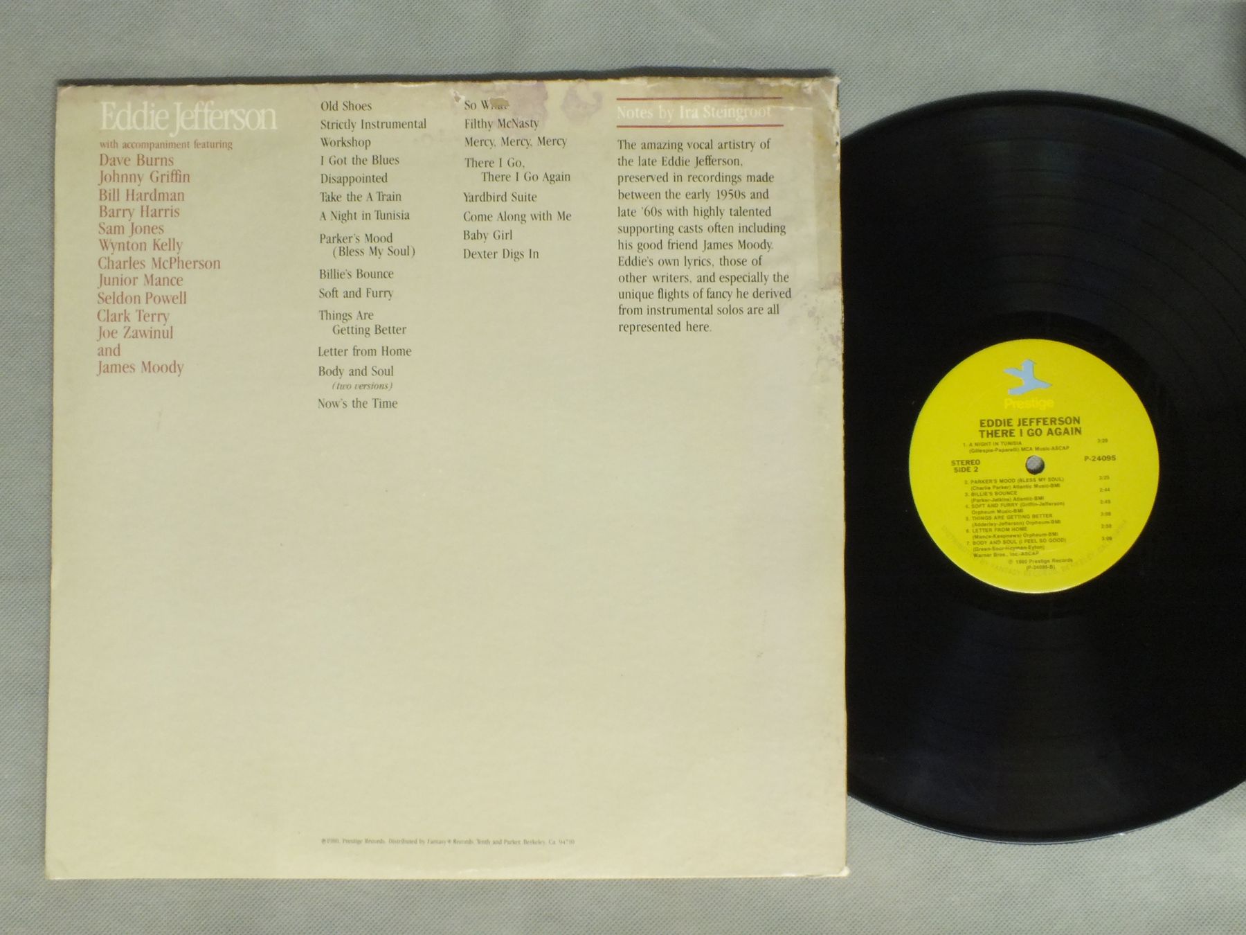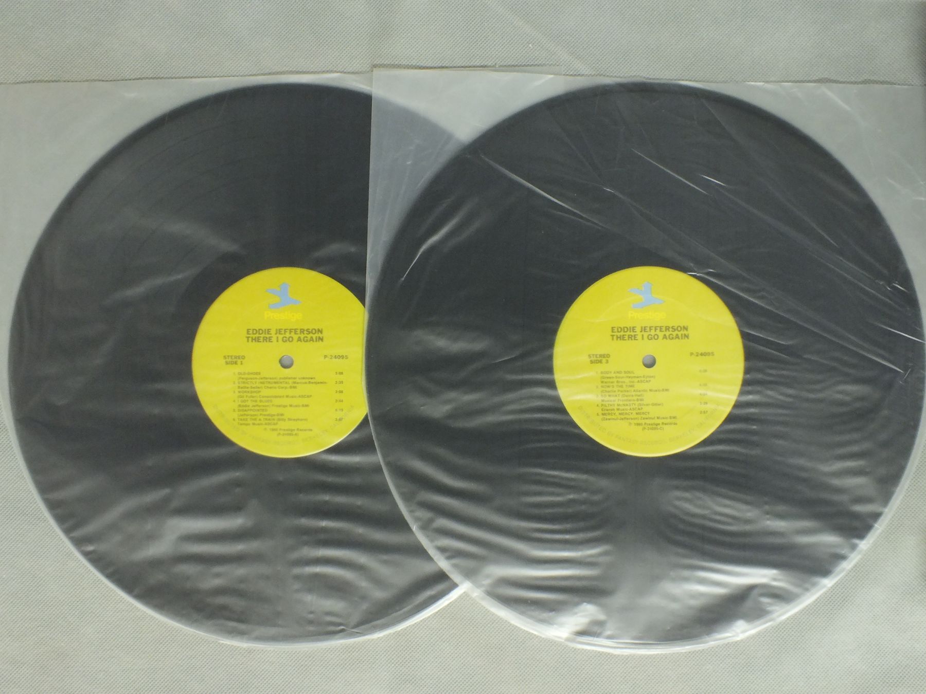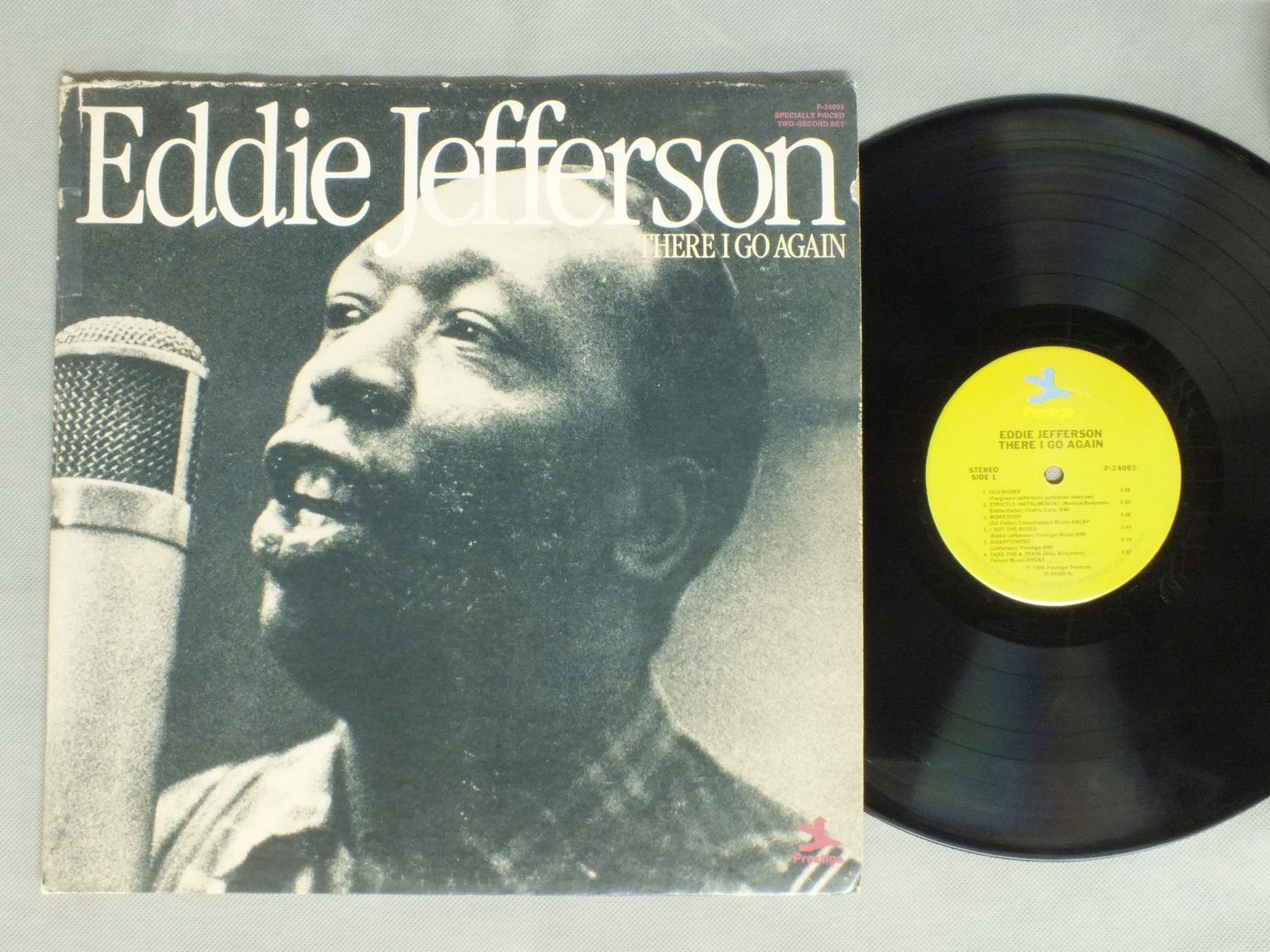 EDDIE JEFFERSON/THERE I GO AGAIN P24095 製造国:米国盤 / Media:LP外観:VG盤の状態:EX+ 価格(税込):¥880(売約済) 送料 7inch:定形外郵便 360円~LP:定形外郵便 660円~送料は、注文の最終画面で確認頂けます。 > > EDDIE JEFFERSON/THERE I GO AGAIN 外観 (VG)特記事項:背スレやヘリスレ。それぞれテープ補修。裏ジャケにダメージ大。見開きにシミ。外観VGの共通説明:ダメージが見るからに多い。 盤の状態 (EX+)特記事項:薄いスリキズ・スレ少し。一見してきれいな状態です。盤EX+の共通説明:盤面の極薄いスリキズ、スレ少し程度 音に出そうなものは無いように見える(極軽微なソフトティック音は除く)。 Tweet それぞれの画像をクリックすると、大きい写真が見られます こちらの商品もお勧めです 1,210円 JAMES DAPOGNY & BUTCH THOMPSON / HOW COULD WE BE BLUE AUTOGRAPHEDHOW COULD WE BE BLUE サイン付 1,540円 EARL FATHA HINES / EARL FATHA HINES 1,210円 ANDRE PREVIN - ITZHAK PERLMAN etc / DIFFERENT KIND OF BLUES 770円 HENRY RED ALLEN / HENRY RED ALLEN 770円 JOHNNY WIGGS etc / RECORDED IN NEW ORLEANS VOL2 770円 ART TATUM / PIANO MAGIC 770円 BOBBY HACKETT MIFF MOLE MUGGSY SPANIER / JAZZ IN NEW YORK 770円 DIZZY GILLESPIE / GILLESPIE AND THE FRIENDS