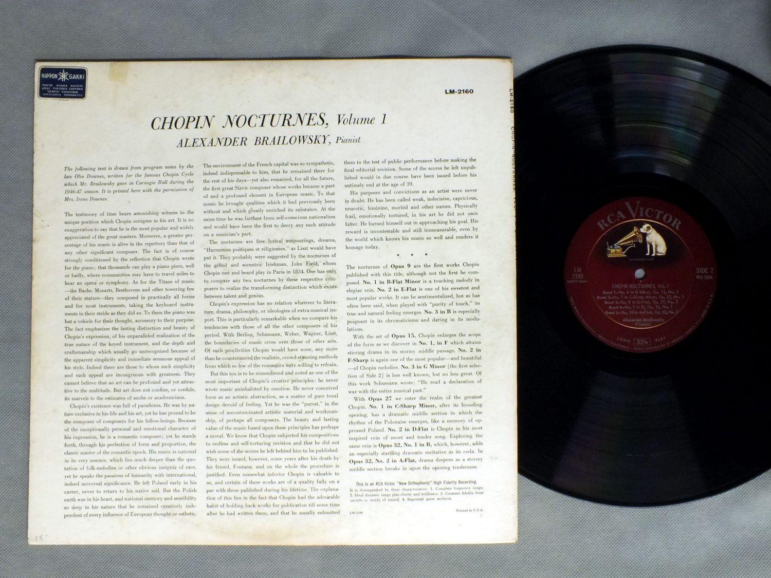 BRAILOWSKYブライロフスキー/CHOPIN - NOCTURNES VOL1 LM2160 製造国:米国盤 / Media:LP外観:EX盤の状態:EX+ 価格(税込):¥1,100(売約済) 送料 7inch:定形外郵便 360円~LP:定形外郵便 660円~送料は、注文の最終画面で確認頂けます。 > > BRAILOWSKY/CHOPIN - NOCTURNES VOL1 外観 (EX)特記事項:表ジャケ側にテープ跡、裏ジャケ側にもテープ跡やよごれ。外観EXの共通説明:ダメージが限定的。中古品としては保存状態がよい方。シミ、ヨゴレ、スレ 少し~軽度。 盤の状態 (EX+)特記事項:極薄いスリキズ・スレ少し。一見してきれいな状態です。盤EX+の共通説明:盤面の極薄いスリキズ、スレ少し程度 音に出そうなものは無いように見える(極軽微なソフトティック音は除く)。 Tweet それぞれの画像をクリックすると、大きい写真が見られます こちらの商品もお勧めです 1,210円 HOROWITZ / SOUND OF HOROWITZ 990円 GTTFRIED HECHTL - BEATRIZ KLIEN / MORZART - 6 SONATAS FOR FLUTE 990円 HUNGERFORD / BEETHOVEN-SONATAS OP2 NO1 & OP2 NO2. 990円 LIONEL ROGG/ZURICH / BACH/ORGAN WORKS VOLUME 3 990円 JEAN PIERRE RAMPAL / BACH-THE COMPLETE FLUTE SONATAS 990円 BRAILOWSKY / CHOPIN-THE 24 PRELUDES 1,210円 RALPH KIRKPATRICKカークパトリック / BACKS - FRANZOSISCHE SUITENバッハ - フランス物語 1,430円 ZUZANA RUZICKOVA / BACH
