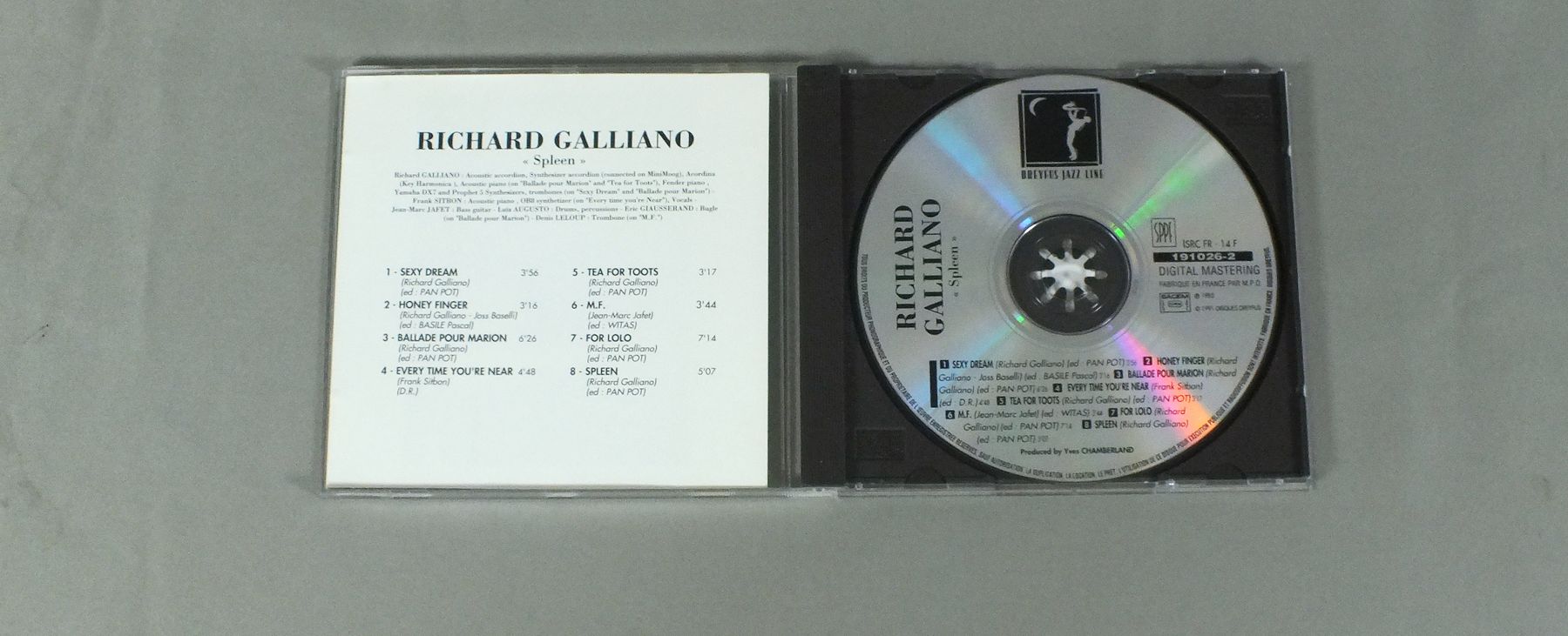 RICHARD GALLIANO/SPLEEN 191026 2 製造国:輸入盤 / Media:CD外観:EX盤の状態:EX+ 価格(税込):¥1,650 送料 7inch:定形外郵便 360円~LP:定形外郵便 660円~送料は、注文の最終画面で確認頂けます。 レコード検索 > COUNTRY/WESTERN > RICHARD GALLIANO/SPLEEN 外観 (EX)特記事項:ケースは、スレやスリキズが少し。カードは、ヨレ、スレ、シミなど小 - 軽度です。外観EXの共通説明:ダメージが限定的。中古品としては保存状態がよい方。シミ、ヨゴレ、スレ 少し~軽度。 盤の状態 (EX+)特記事項:微細なスリキズが少々。きれいな感じの盤面です。盤EX+の共通説明:盤面の極薄いスリキズ、スレ少し程度 音に出そうなものは無いように見える(極軽微なソフトティック音は除く)。 Tweet それぞれの画像をクリックすると、大きい写真が見られます こちらの商品もお勧めです 2,200円 MARC LEVIN AND HIS FREE UNIT / DRAGON SUITE 1,650円 TOSHIYUKI HONDA本田俊之 / SHANGRI-LAシャングリア(楽園)
