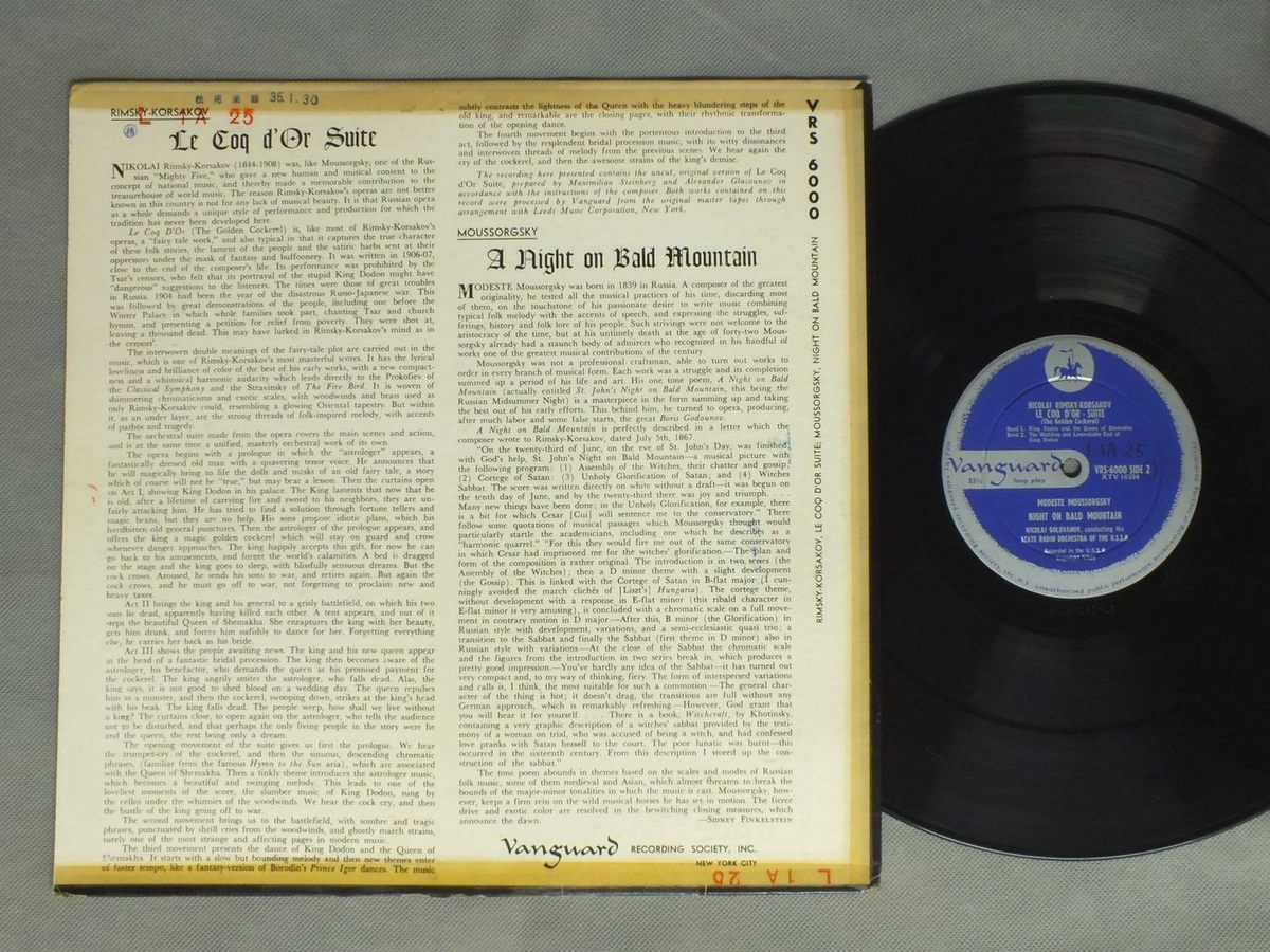 GOLOVANOV/RIMSKY-KORSAKOV LE CAQ D`OR SUITE VRS-6000 製造国:米国盤 / Media:LP外観:VG盤の状態:EX- 価格(税込):¥1,320(売約済) 送料 7inch:定形外郵便 360円~LP:定形外郵便 660円~送料は、注文の最終画面で確認頂けます。 レコード検索 > > GOLOVANOV/RIMSKY-KORSAKOV LE CAQ D`OR SUITE 外観 (VG)特記事項:背やヘリにテープ。表ジャケに剥がれ有り。裏ジャケ側にスタンプ。外観VGの共通説明:ダメージが見るからに多い。 盤の状態 (EX-)特記事項:薄いスリキズ・細かい表面スレ軽くある感じ。全体的には殆どが軽微なものの様子です。盤EX-の共通説明:盤面のスリキズが多少有り。音に出そうなものは殆ど無いように見える~さほど気にならないぐらいの軽いプチ数カ所程度。 Tweet それぞれの画像をクリックすると、大きい写真が見られます こちらの商品もお勧めです 1,320円 RAMPAL / FESTIVAL OF FLUTE CONCERTOS 3,520円 JOSE ECHANIZ / GRANADOS TWELVE SPANISH DANCES 1,320円 ALEXEI NASEDKIN / PROKOFIEV - 16 PIECES FROM THE BALLET CINDERELLA 990円 GRORIA SAARONEN / GRORIA SAARONEN PIANO RECITAL 1,650円 ASHKENAZY / ASHKENAZY PLAYS LISZT 1,760円 KOOPMANコープマン / TELEMANN FANTASIENテレマン チェンバロ集 990円 ADLER / PHILIP JAMES SYM. NO.1 990円 MARCEL GRANDJANY / HARPE CLASSIQUE ET MODERNE