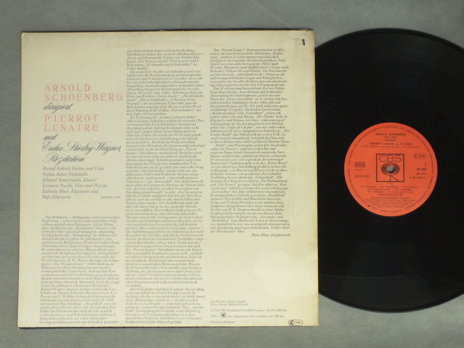 ARNOLD SCHOENBERG/SCHOENBERG PIERROT LUNAIRE CBS 61442 製造国:独盤 / Media:LP外観:EX盤の状態:EX- 価格(税込):¥1,320(売約済) 送料 7inch:定形外郵便 360円~LP:定形外郵便 660円~送料は、注文の最終画面で確認頂けます。 レコード検索 > > ARNOLD SCHOENBERG/SCHOENBERG PIERROT LUNAIRE 外観 (EX)特記事項:裏ジャケ側によごれ。外観EXの共通説明:ダメージが限定的。中古品としては保存状態がよい方。シミ、ヨゴレ、スレ 少し~軽度。 盤の状態 (EX-)特記事項:薄いスリキズ・細かい表面スレ軽くある感じです。プチ出そうな所は少し。軽微なものが中心の様子です。盤EX-の共通説明:盤面のスリキズが多少有り。音に出そうなものは殆ど無いように見える~さほど気にならないぐらいの軽いプチ数カ所程度。 Tweet それぞれの画像をクリックすると、大きい写真が見られます こちらの商品もお勧めです 1,760円 SCHONBERGシェーンベルク / ERWARTUNG OP.17 1,650円 / TWENTIETH CENTURY RECORDER MUSIC 1,540円 SILVIA LOZANO / BALLET FOLCLORICO NACIONAL DE MEXICO ALBUM NO1 1,760円 NED ROREMネッド・ロアム / POEMS OF LOVE & THE RAIN-SECOND PIANO SONATA 1,760円 OKKO KAMU-LEIF SEGARSTAMオッコ・カム-レイフ・セーガースタム / KOKKONEN-SYM. NR2-NR4コッコネン-交響曲 第2番-第4番 1,430円 HINDEMITH / PAUL HINDEMITH REQUITEM `FOR THOSE WE LOVE ` 1,980円 HORENSTEIN / SCHONBERG-VERKLARTE NACHT 990円 ARTHUR KULLING / BAYREUTHER SCHMUNZEL-WAGNER