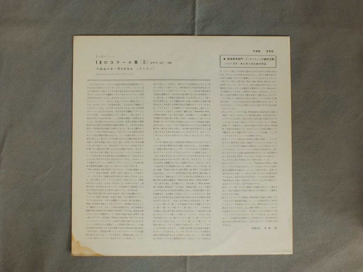 WALCHAヴァルヒャ/BACH ACHTZEHN CHORALEバッハ - 18のコラール集(?) 198 398 製造国:独盤 / Media:LP外観:VG+盤の状態:EX+ 価格(税込):¥1,760(売約済) 送料 7inch:定形外郵便 360円~LP:定形外郵便 660円~送料は、注文の最終画面で確認頂けます。 レコード検索 > > WALCHA/BACH ACHTZEHN CHORALE 外観 (VG+)特記事項:背にテープ。外観VG+の共通説明:ダメージやや有り。シミ、ヨゴレ、スレなど多少~やや多め。 盤の状態 (EX+)特記事項:薄いスリキズ・スレ少し。一見してきれいな状態です。盤EX+の共通説明:盤面の極薄いスリキズ、スレ少し程度 音に出そうなものは無いように見える(極軽微なソフトティック音は除く)。 Tweet それぞれの画像をクリックすると、大きい写真が見られます こちらの商品もお勧めです 990円 HARRY GRODBERG / BACH - EIGHT SMALL PRELUDES & FUGUES FOR THE ORGAN 990円 WALTER KRAFT / BUXTEHUDE - TOCCAT D-MOLL 990円 PIERRE COCHEREAU / COUPERIN - THE ORGAN WORKS 1,210円 RALPH KIRKPATRICKカークパトリック / BACH- TOCCATA G-MOLL BWV915 etcバッハ - トッカータト短調他 990円 WALTER AND BEATRICE KLIEN / MUSIC FOR PIANO FOUR HANDS 990円 RICHTER / F.SCHUBERT MOMENTS MUSICAUX etc 1,540円 RALPH KIRKPATRICKラルフ・カークパトリック / BACH - FRENCH SUITES NO5 & 6 FANTASIA AND FUGUEフランス組曲第5番6番 他 1,650円 KAZUNE SHIMIZU清水和音 / PLAYS BEETHOVEN APPASSIONATA PATHETIQUE熱情&悲愴