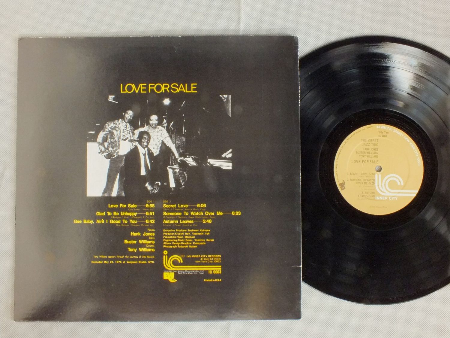 GREAT JAZZ TRIO/LOVE FOR SALE IC6003 製造国:米国盤 / Media:LP外観:EX盤の状態:EX+ 価格(税込):¥1,320(売約済) 送料 7inch:定形外郵便 360円~LP:定形外郵便 660円~送料は、注文の最終画面で確認頂けます。 > > GREAT JAZZ TRIO/LOVE FOR SALE 外観 (EX)特記事項:特記なし。外観EXの共通説明:ダメージが限定的。中古品としては保存状態がよい方。シミ、ヨゴレ、スレ 少し~軽度。 盤の状態 (EX+)特記事項:薄いスリキズ・スレ少し。一見してきれいな状態です。盤EX+の共通説明:盤面の極薄いスリキズ、スレ少し程度 音に出そうなものは無いように見える(極軽微なソフトティック音は除く)。 Tweet それぞれの画像をクリックすると、大きい写真が見られます こちらの商品もお勧めです 1,320円 PHOENIX JAZZERS WITH BOB PELLAND / REVIVAL! 880円 CHICAGO CONNECTION / JAZZ ME BLUES 1,320円 RALPH SUTTON / BIX BEIDERBECKE SUITE AUTOGRAPHEDBIX BEIDERBECKE SUITE サイン付 1,100円 REX STEWART / AND THE ELLINGTONIANS 4,950円 HUMPHREY LYTTELTON QUARTET WITH CAB KAYE / HUMPH MEETS CAB 1,210円 WILD BILL DAVISON / WILD BILL DAVISON ALL STARS AUTOGRAPHEDWILD BILL DAVISON ALL STARS サイン付 1,210円 FRANKIE CAPP & NAT PIERCE / FEATURING JOE WILLIAMS AUTOGRAPHEDサイン付 990円 DICK CARY / AMAZING DICK CARY AUTOGRAPHEDRALPH SUTTONサイン付
