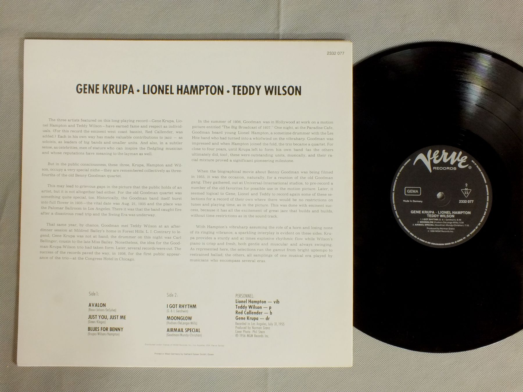 GENE KRUPA - LIONEL HAMPTON - TEDDY WILSON/GENE KRUPA-LIONEL HAMPTON-TEDDY WILSON 2332 077 製造国:独盤 / Media:LP外観:EX盤の状態:EX+ 価格(税込):¥1,100(売約済) 送料 7inch:定形外郵便 360円~LP:定形外郵便 660円~送料は、注文の最終画面で確認頂けます。 > > GENE KRUPA - LIONEL HAMPTON - TEDDY WILSON/GENE KRUPA-LIONEL HAMPTON-TEDDY WILSON 外観 (EX)特記事項:特記なし。外観EXの共通説明:ダメージが限定的。中古品としては保存状態がよい方。シミ、ヨゴレ、スレ 少し~軽度。 盤の状態 (EX+)特記事項:薄いスリキズ・スレ少し。一見してきれいな状態です。盤EX+の共通説明:盤面の極薄いスリキズ、スレ少し程度 音に出そうなものは無いように見える(極軽微なソフトティック音は除く)。 Tweet それぞれの画像をクリックすると、大きい写真が見られます こちらの商品もお勧めです 440円 FRANKIE CARLE / HONKY-TONK HITS BY THE DOZEN 770円 PAUL QUINICHETTE / KID FROM DENVER 1,980円 MABEL MERCER & BOBBY SHORT / AT TOWN HALL 1,210円 RALPH SUTTON / COSENZA JAZZ WORKSHOP AUTOGRAPHEDCOSENZA JAZZ WORKSHOP サイン付 990円 DICK CARY / AMAZING DICK CARY AUTOGRAPHEDRALPH SUTTONサイン付 440円 WORLD`S GREATEST JAZZ BAND / WORLD`S GREATEST JAZZ BAND PLAYS RODGERS & HART 770円 ERROLL GARNER / PLAYS ERROLL GARNER 990円 RAY MC KINLEY - BERNIE PRIVIN - PEANUTS HUCKO etc / JAZZMEN IN UNIFORM PARIS 1945