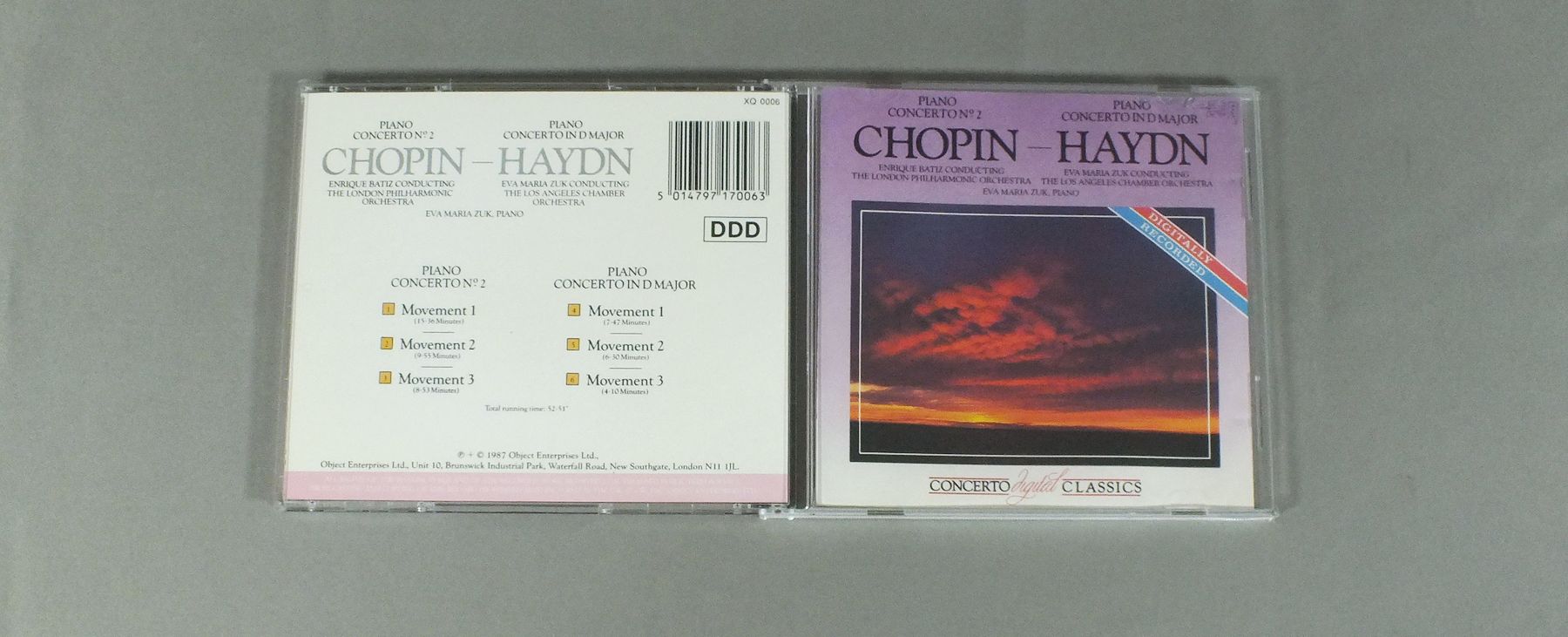 EVA MARIA ZUK - ENRIQUE BATIZ/CHOPIN - PIANO CONC. NO2-HAYDN - PIANO CONC. XQ0006 製造国:輸入盤 / Media:CD外観:EX-盤の状態:EX 価格(税込):¥550 送料 7inch:定形外郵便 360円~LP:定形外郵便 660円~送料は、注文の最終画面で確認頂けます。 > > EVA MARIA ZUK - ENRIQUE BATIZ/CHOPIN - PIANO CONC. NO2-HAYDN - PIANO CONC. 外観 (EX-)特記事項:カードはケースの爪跡や、表表紙に書き込み有り。外観EX-の共通説明:ダメージ軽度~多少。 中古品としては普通の状態。シミ、ヨゴレ、スレなど軽く~多少。 盤の状態 (EX)特記事項:薄いスリキズが少しありますが、微細な感じ。全体的にはきれいな感じの盤面です。盤EXの共通説明:盤面のスリキズが薄いものが少し~軽度 音に出そうなものは無いように見える(軽微なソフトティック音は除く)。 Tweet それぞれの画像をクリックすると、大きい写真が見られます こちらの商品もお勧めです 2,200円 SOLTI + CHICAGO SYMPHONY / BEETHOVEN NINE SYMPHONIES 9LP BOX 1,760円 RICHTER - KARAJAN - WIENNA PHILHARMONICリヒター - カラヤン - ウィーン・フィル / TCHAIKOVSKY - CONCERT NO1 FOR PIANO AND ORCHESTRAチャイコフスキー - ピアノとオーケストラのための協奏曲第1番 1,540円 ABBADO - VIENER PHILHARMONIKERアバド - ウィーン・フィル / BRAHMS - HANGARIAN DANCESブラームス - ハンガリア舞曲 990円 BRENDEL - MARRTNER - ACADEMY OF ST.MARTIN IN THE FIELDSブレンデル - マリナー - アカデミー室内管弦楽団 / MOZRT - PIANO CONCERTOS NO19 NO23モーツァルト - ピアノ協奏曲第19番23番 1,540円 LAWRENCE FOSTER - HOUSTON SYMPHONY ORCHESTRAローレンス・フォスター - ヒューストン交響楽団 / PAUL CHIHARA - SYMPHONY IN CELEBRATIONポール・チハラ - SYMPHONY IN CELEBRATION 1,760円 FLAMIG - DRESDNER PHILHARMONIEフレーミッヒ - ドレスデン・フィルハーモニー / BACH - MESSEN バッハ - ミサ曲 1,540円 BEECHAM - ROYAL PHILHARMONIC ORCHESTAビーチャム - ロイヤル・フィルハーモニー管弦楽団 / MOZART - SYMPHONY NO41 JUPITERモーツアルト交響曲第41番ジュピター 2,860円 JOCHUM - CHOR UND ORCHESTER DES BAYERISCHEN RUNDFUNKSヨッフム - バイエルン放送交響楽団 / HAYDN - MISSA SANCTAE CAECILIAEハイドン - チェチリアのミサ