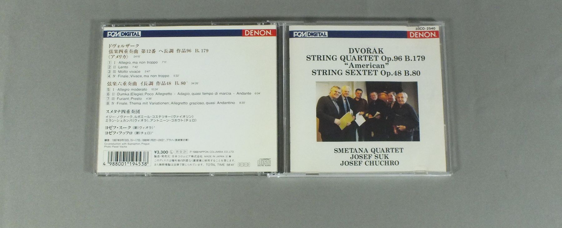 SMETANA QUARTET etcスメタナ四重奏団 他/DVORAK - SQ AMERICAN-STRING SEXTETドヴォルザーク - アメリカ-弦楽六重奏曲 33CO2540 製造国:日本盤 / Media:CD外観:EX-盤の状態:EX 価格(税込):¥2,750 送料 7inch:定形外郵便 360円~LP:定形外郵便 660円~送料は、注文の最終画面で確認頂けます。 > > SMETANA QUARTET etc/DVORAK - SQ AMERICAN-STRING SEXTET 外観 (EX-)特記事項:ブックレットは、ケースの爪跡や、破れ小有り。シミが少し。外観EX-の共通説明:ダメージ軽度~多少。 中古品としては普通の状態。シミ、ヨゴレ、スレなど軽く~多少。 盤の状態 (EX)特記事項:薄いスリキズが少しありますが、微細な感じ。全体的にはきれいな感じの盤面です。盤EXの共通説明:盤面のスリキズが薄いものが少し~軽度 音に出そうなものは無いように見える(軽微なソフトティック音は除く)。 Tweet それぞれの画像をクリックすると、大きい写真が見られます こちらの商品もお勧めです 990円 BORODIN QUARTETボロディン弦楽四重奏団 / BORODIN - STRING QUARTET NO.2ボロディン - 弦楽四重奏曲第2番 1,540円 KARLBEINZ ZOLLER - BERNHARD KLEE - ENGLISH CHEMBER ORCHESTRAカールハインツ・ツェラー - ベルンハルト・クレー - 英国室内管弦楽団 / MOZART - FLOTENKONZERTEモーツアルト - フルート協奏曲 1,540円 VICTOR DESARZENS - LAUSANNE CHEMBER ORCHESTRAデザルツェンス - ローザンヌ室内管弦楽団 / WEBER - SYMPHONY NO1ウエーバー交響曲第1番 1,540円 IRWIN GAGE - THOMAS RIEBLアーウィン・ゲージ - トーマス・リープル / BRAHMS - BRIGITTE FASSBAENDERブラームス - ブリギッテ・ファスベンダー 990円 I MUSIEIイ・ムジチ合奏団 / MOZART - DIVERTOMENTO モーツァルト - ディヴェルティメント 1,540円 BAUMGAETNER - FESTIVAL STRINGS LUCERNEバウムガルトナー - ルツェルン音楽祭弦楽合奏団他 / VIVARDI - CONCERTO FOR 2 VIOLINヴィヴァルディ - 2つのヴァイオリンのための協奏曲他 990円 VIENER STREICHQUARTETTウィーン弦楽四重奏 / HAYDN - STRING QUARTET NO.77 `EMPEROR`ハイドン - 弦楽四重奏曲第77番 皇帝 990円 BARENBOIM - ENGLISH CHAMBER ORCHESTRAバレンボエム - イギリス室内管弦楽団 / SCHONBERG - VERKLARTE NACHETシェーンベルク - 浄夜