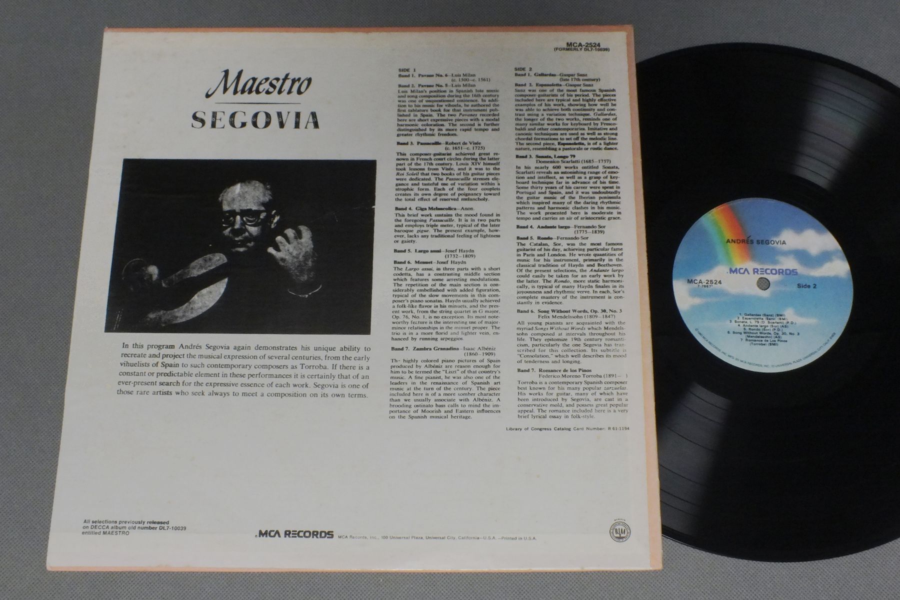 SEGOVIA/MAESTRO SEGOVIA MCA-2524 製造国:米国盤 / Media:LP外観:EX盤の状態:EX 価格(税込):¥1,100(売約済) 送料 7inch:定形外郵便 360円~LP:定形外郵便 660円~送料は、注文の最終画面で確認頂けます。 レコード検索 > > SEGOVIA/MAESTRO SEGOVIA 外観 (EX)特記事項:特記なし。外観EXの共通説明:ダメージが限定的。中古品としては保存状態がよい方。シミ、ヨゴレ、スレ 少し~軽度。 盤の状態 (EX)特記事項:薄いスリキズ・スレ軽くある感じ。プチ出そうなところは少しだけで、ほとんどが軽微なものの様子です。盤EXの共通説明:盤面のスリキズが薄いものが少し~軽度 音に出そうなものは無いように見える(軽微なソフトティック音は除く)。 Tweet それぞれの画像をクリックすると、大きい写真が見られます こちらの商品もお勧めです 990円 GLORIA SAARINEN / POPULAR PIANO PIECES 1,760円 KOOPMANコープマン / PICCHI DANZE E TOCCATAピッキ チェンバロ曲集 990円 ESCHENBACH / MOZART-KLAVIERSONATEN KV333 1,980円 DIESKAU MENUHIN / BEETHOVEN FOLK SONGS 990円 WALTER AND BEATRICE KLIEN / MUSIC FOR PIANO FOUR HANDS 3,080円 BERNHARD KLEBEL / HEINRICH SCHUTZ UND ITALIEN 1,320円 PERLMAN&ZUKERMAN / PROKOFIEV - SONATA 1,430円 GULDA / GULDA SPIELT BEETHOVEN-SONATEN
