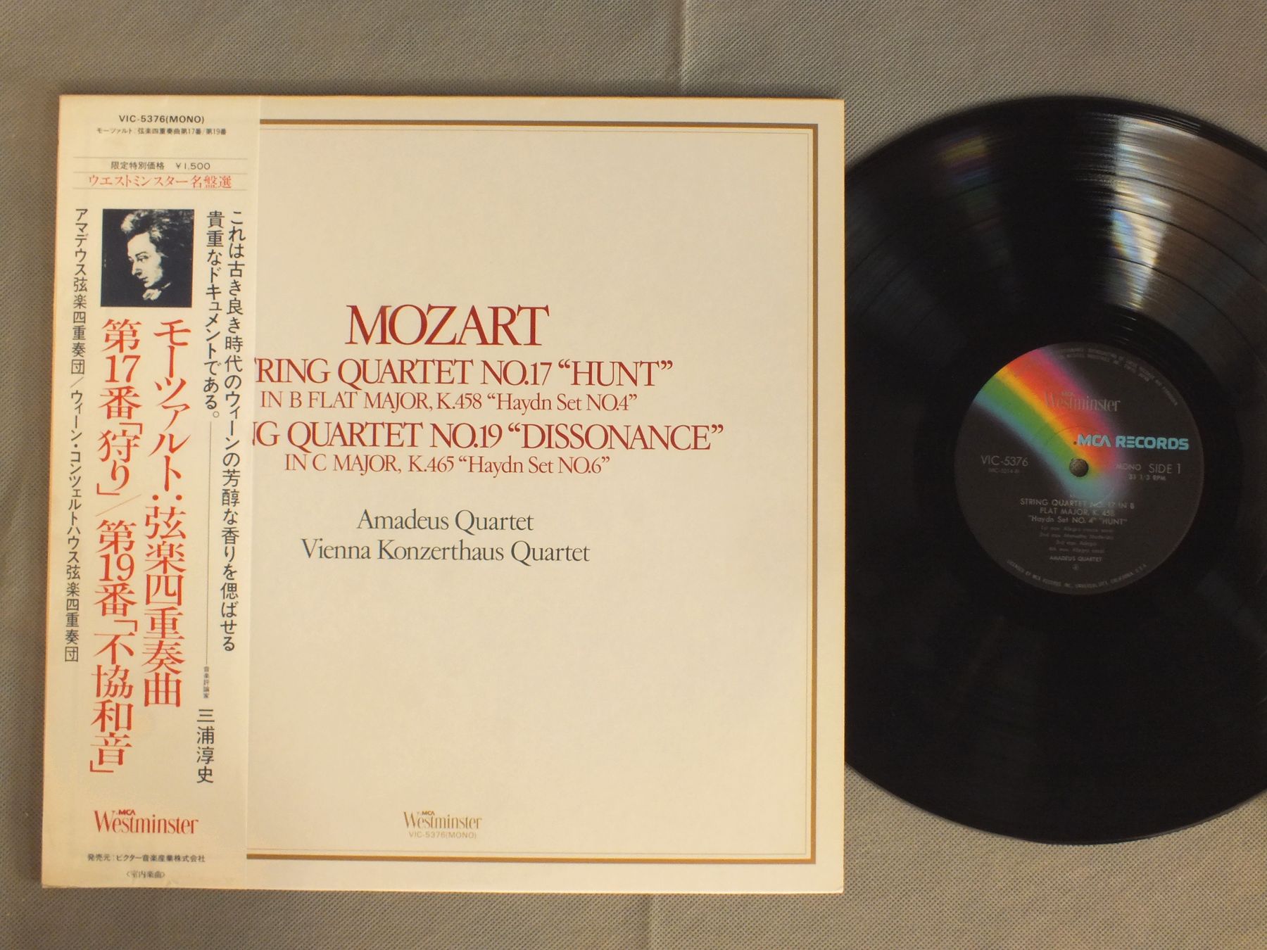 AMADEUS VIENNA Qアマデウス弦楽四重奏団 - ウィーン・コンツェルトハウス弦楽四重奏団/MOZART/SQ NO17モーツァルト - 第17番 狩り-第19番 不協和音 VIC5376 製造国:日本盤 / Media:LP外観:EX盤の状態:EX+ 価格(税込):¥660(売約済) 送料 7inch:定形外郵便 360円~LP:定形外郵便 660円~送料は、注文の最終画面で確認頂けます。 > > AMADEUS VIENNA Q/MOZART/SQ NO17 外観 (EX)特記事項:背付近に日焼け。外観EXの共通説明:ダメージが限定的。中古品としては保存状態がよい方。シミ、ヨゴレ、スレ 少し~軽度。 盤の状態 (EX+)特記事項:薄いスリキズ・スレ少し。一見してきれいな状態です。盤EX+の共通説明:盤面の極薄いスリキズ、スレ少し程度 音に出そうなものは無いように見える(極軽微なソフトティック音は除く)。 Tweet それぞれの画像をクリックすると、大きい写真が見られます こちらの商品もお勧めです 1,430円 OCTUOR DE PARISパリ八重奏団 / BEETHOVEN SEPTUORベートーヴェン 七重奏曲 変 990円 BUDAPEST STRING QUARTETブダペスト弦楽四重奏団 / MOZART - STRING QURTET NO18 & NO19モーツァルト管弦四重奏曲 第18番第19番 990円 VIENNA PHILAHMONIC WIND GROUPウィーン・フィル木管グループ / MOZART - DIVERTIMENTO NO8 etcモーツアルト - ディヴェルティメント第8番他 990円 M.ANDRE-JOLIVETモーリス・アンドレ-ジョリヴェ / JOLIVET-HEPTADE-ARIOSO-2 CONC.ジョリヴェ-エプタード-アリオーソ・バロッコ-2つの協奏曲 770円 A. NICOLET - K. RICHTERオーレル・ニコレ - カール・リヒター / BACH - SONATAS FOR FLUTE AND OBBLIGATO HARPSICHORDバッハ - フルート・ソナタ集 1,320円 MEMBERS OF THE VIENNA OCTETウィーン八重奏団員 / MOZART - DIVERTIMENTO NO15モーツアルト喜遊曲第15番 990円 OISTRAKH TRIOオイストラッフ・トリオ / SCHUBERT - TRIO NO1シューベルト - ピアノ三重奏曲 第1番 990円 HOGWOODホグウッド / MOZART EINE KLEINE NACHTMUSIKモーツァルト セレナード 第13番 `アイネ・クライネ・ナハトムジーク`