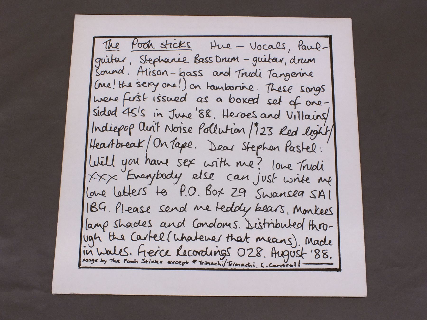 POOH STICS/POOH STICKS SINGLE SIDE LP FRIGHT028 製造国:英国盤 / Media:LPMatrix:A-1外観:EX盤の状態:EX- 価格(税込):¥4,442(売約済) 送料 7inch:定形外郵便 360円~LP:定形外郵便 660円~送料は、注文の最終画面で確認頂けます。 > > POOH STICS/POOH STICKS SINGLE SIDE LP 外観 (EX)特記事項:上ヘリにスレが少々。ジャケ表面は全体的にスレやスリキズ、よごれ等あまり無いきれいな状態です。オリジナルインナーもヨレやよごれ、抜けの無いきれいな状態です。外観EXの共通説明:ダメージが限定的。中古品としては保存状態がよい方。シミ、ヨゴレ、スレ 少し~軽度。 盤の状態 (EX-)特記事項:薄いスリキズ・細かい表面スレ多少ある感じ。殆どが軽微なものの様子です。所々聴いてみましたが、チリプチは軽度で音もしっかりなっています。盤EX-の共通説明:盤面のスリキズが多少有り。音に出そうなものは殆ど無いように見える~さほど気にならないぐらいの軽いプチ数カ所程度。 その他:片面のみ音源あり。 Tweet それぞれの画像をクリックすると、大きい写真が見られます こちらの商品もお勧めです 3,300円 CHESTERFIELD / CROCODILE TEARS 2,420円 MOMUS / DON`T STOP THE NIGHT 3,520円 GROOVE FARM / PLUG 3,300円 KING OF LUXEMBOURG / SIR 3,080円 53rd & 3rd LBL ARTISTS / GOOD FEELING 2,640円 KING OF LUXEMBOURG / ROYAL BASTARD 3,080円 RAZORCUTS / PATTERNS ON THE WATER 3,080円 FRIENDS / SONGS WITHOUT TEARS
