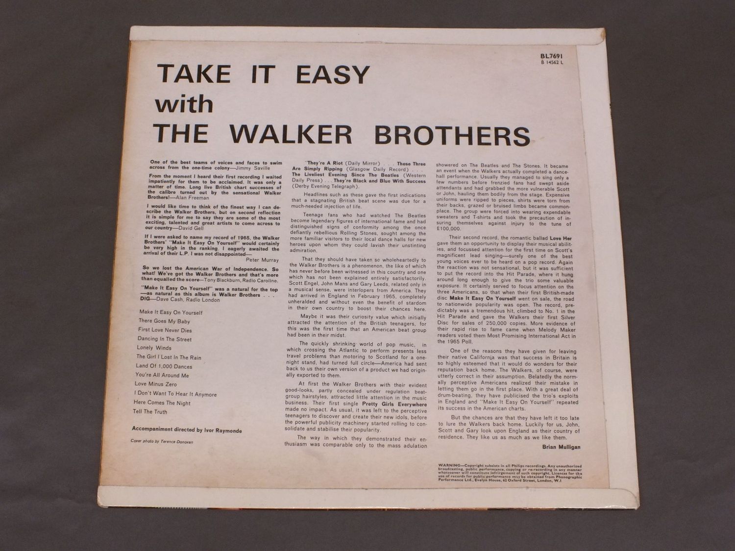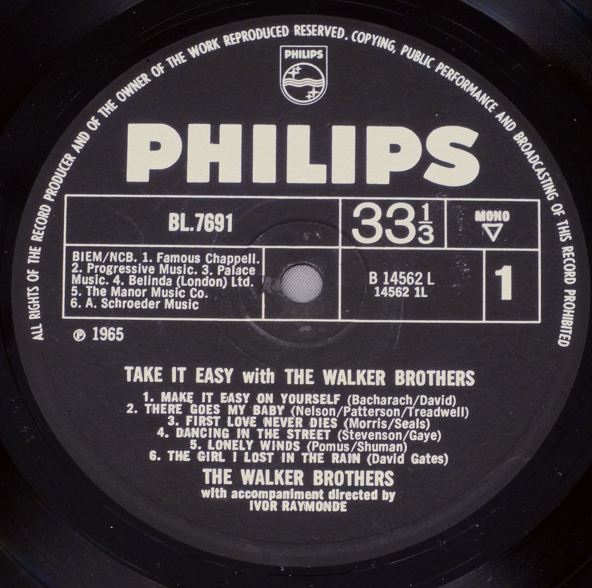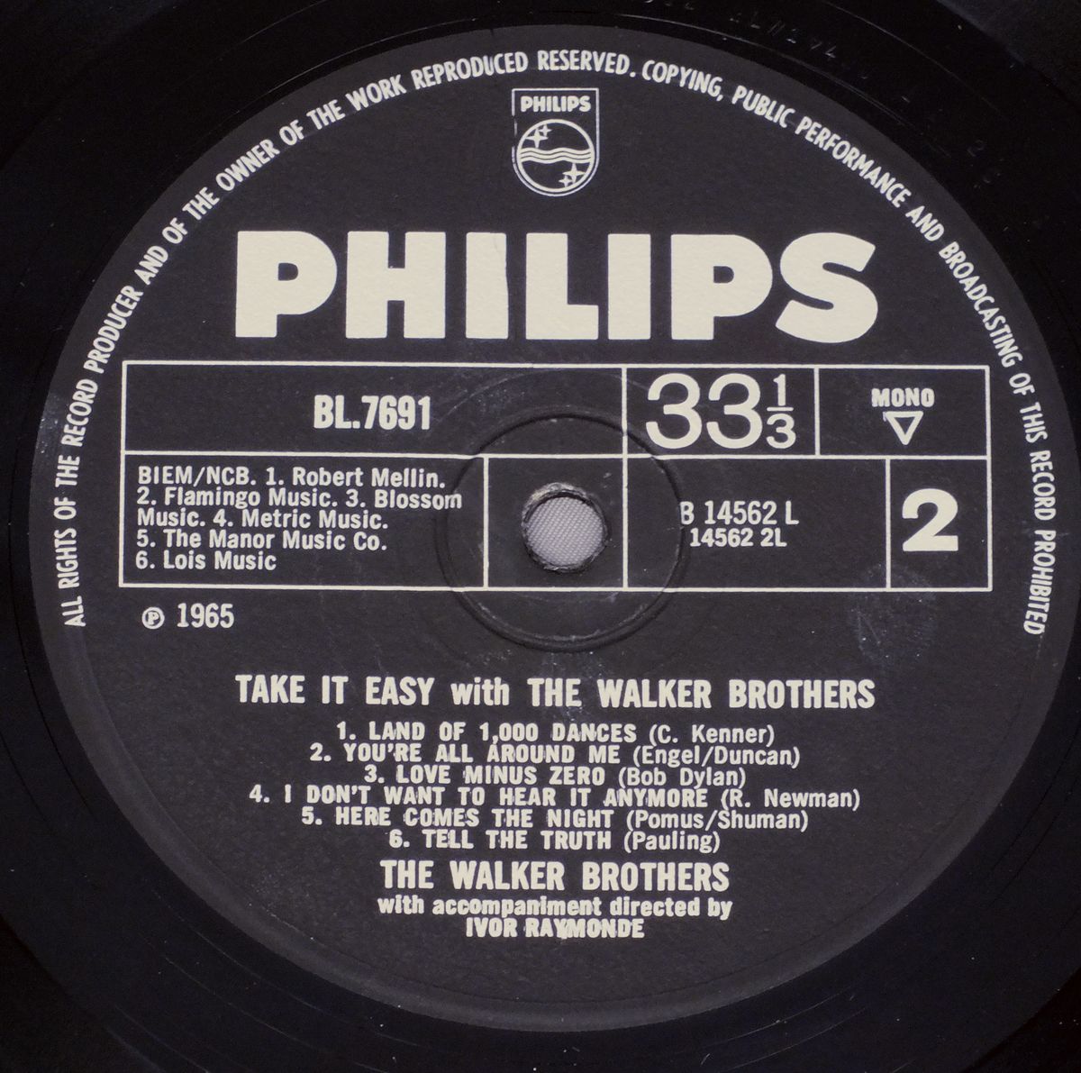 WALKER BROTHERS/TAKE IT EASY BL7691 製造国:英国盤 / Media:LPMatrix:1L//1 2L//1外観:EX盤の状態:EX 価格(税込):¥5,500(売約済) 送料 7inch:定形外郵便 360円~LP:定形外郵便 660円~送料は、注文の最終画面で確認頂けます。 > > WALKER BROTHERS/TAKE IT EASY 外観 (EX)特記事項:表ジャケは厚手のコーティング仕様。角スレ多少有り。上ヘリにドット剥がれ一箇所。表ジャケはコーティングのヨレシワもあまり無く、スレやスリキズ、よごれ等も薄い感じです。裏ジャケはレコード取出し口付近に日焼け感。よごれ等は薄い感じだと思います。外観EXの共通説明:ダメージが限定的。中古品としては保存状態がよい方。シミ、ヨゴレ、スレ 少し~軽度。 盤の状態 (EX)特記事項:薄いスリキズ・スレ軽く-多少ある感じ。薄めの線キズもありますが、モノ針なら音に出そうにない軽微なものの様子です。曲間など、静かなところを中心に聴いて見ましたが、チリプチ軽度で音もしっかり鳴っていました。盤EXの共通説明:盤面のスリキズが薄いものが少し~軽度 音に出そうなものは無いように見える(軽微なソフトティック音は除く)。 Tweet それぞれの画像をクリックすると、大きい写真が見られます こちらの商品もお勧めです 4,400円 FREDDIE AND THE DREAMERS / FREDDIE AND THE DREAMERS 7,700円 BILLY J KRAMER / LISTEN 10,450円 WAYNE FONTANA AND THE MINDBENDERS / 1st ALBUM 10,450円 ANIMALS / ANIMAL TRACKS 6,600円 SOUNDS INCORPORATED / SOUNDS INCORPORATED MONO 7,700円 AMEN CORNER / ROUND AMEN CORNER 16,500円 SPENCER DAVIS GROUP / TRAFFIC / HERE WE GO ROUND THE MULBERRY BUSH 5,500円 GEORGE FAME / HALL OF FAME