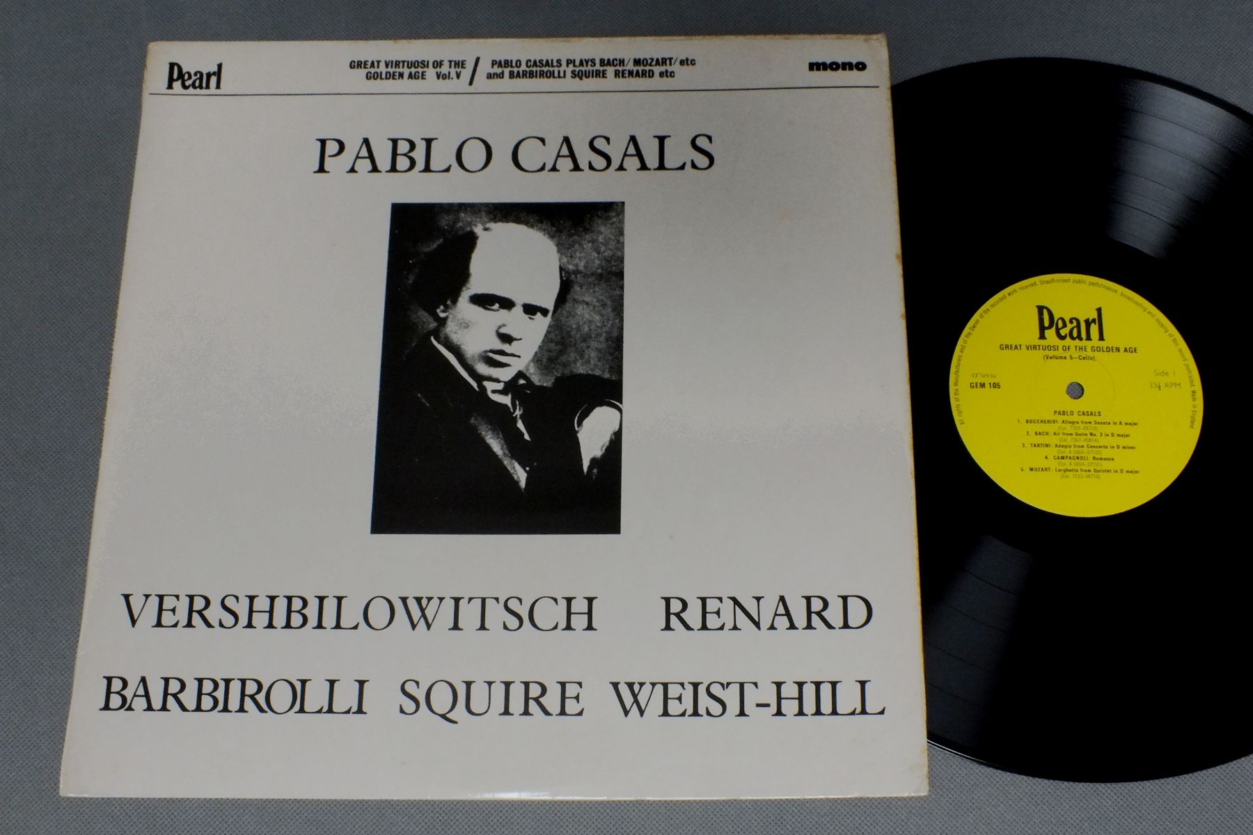 CASALS/GREAT VIRTUOSI OF GOLDEN AGE GEM 105 製造国:英国盤 / Media:LP外観:EX-盤の状態:EX+ 価格(税込):¥3,511(売約済) 送料 7inch:定形外郵便 360円~LP:定形外郵便 660円~送料は、注文の最終画面で確認頂けます。 レコード検索 > > CASALS/GREAT VIRTUOSI OF GOLDEN AGE 外観 (EX-)特記事項:ジャケ表面にシミあり。外観EX-の共通説明:ダメージ軽度~多少。 中古品としては普通の状態。シミ、ヨゴレ、スレなど軽く~多少。 盤の状態 (EX+)特記事項:薄いスリキズ・スレ少し。一見してきれいな状態です。盤EX+の共通説明:盤面の極薄いスリキズ、スレ少し程度 音に出そうなものは無いように見える(極軽微なソフトティック音は除く)。 Tweet それぞれの画像をクリックすると、大きい写真が見られます こちらの商品もお勧めです 990円 QUATUOR WELLER / SCHUBERT - QUINTETTE 990円 CLASSIC SQ / MOZART-THREE FLUTE QUARTETS 880円 TRIO DI TRIESTE / BRAHMS TRIO NO1 1,320円 M.BIXLER-L.DAVENPORT / FOR THREE ALTO RECORDERS 880円 RAMPAL / FOUR CENTURIES OF THE FLUTE 990円 BACH-COLLEGIUM / KONZERT MIT DEM LEIPZIGER BACH-COLLEGIUM 990円 SCHOLZ / MOZART-HAFFNER SERENADE 1,320円 RUDOLF SERKIN / BRAHMS QUINTETTE