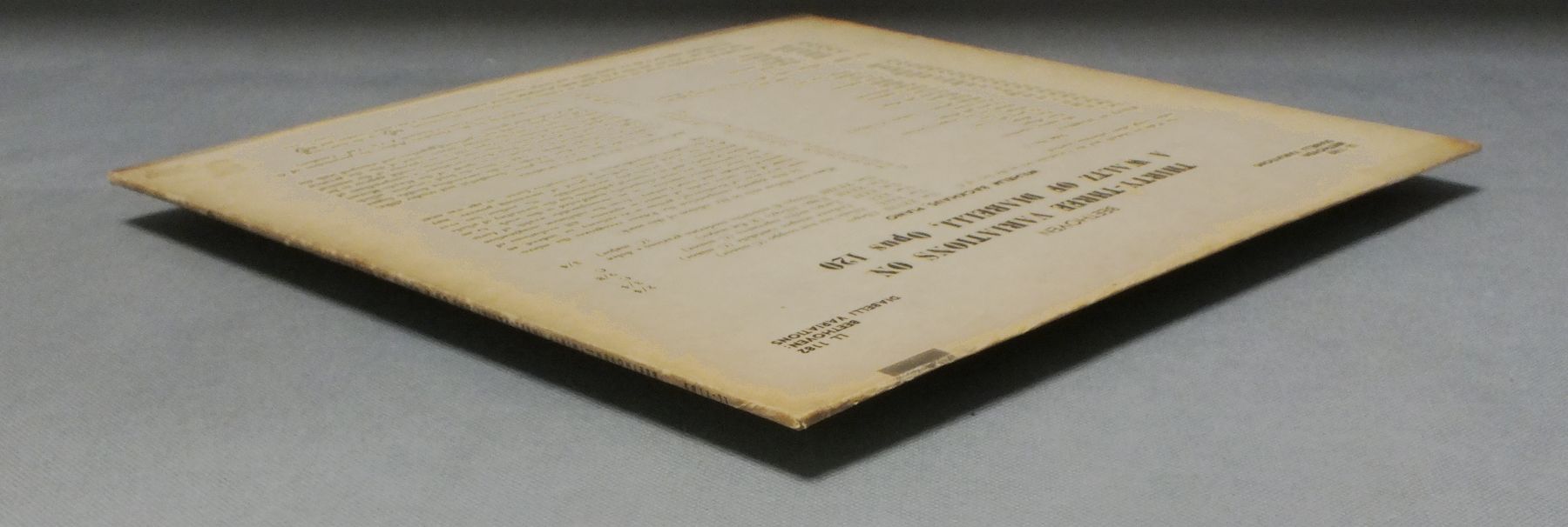 BAKKHAUS/BEETHOVEN THIRTY-THREE VARIATIONS LL-1182 製造国:英国盤 / Media:LP外観:EX-盤の状態:EX- 価格(税込):¥1,100(売約済) 送料 7inch:定形外郵便 360円~LP:定形外郵便 660円~送料は、注文の最終画面で確認頂けます。 レコード検索 > > BAKKHAUS/BEETHOVEN THIRTY-THREE VARIATIONS 外観 (EX-)特記事項:レコード取出し口付近でコーティングの剥がれ。裏ジャケ側によごれ有り。外観EX-の共通説明:ダメージ軽度~多少。 中古品としては普通の状態。シミ、ヨゴレ、スレなど軽く~多少。 盤の状態 (EX-)特記事項:薄いスリキズ・細かい表面スレ軽くある感じです。プチ出そうな所は少し。軽微なものが中心の様子です。盤EX-の共通説明:盤面のスリキズが多少有り。音に出そうなものは殆ど無いように見える~さほど気にならないぐらいの軽いプチ数カ所程度。 Tweet それぞれの画像をクリックすると、大きい写真が見られます こちらの商品もお勧めです 2,200円 CORTOT / FRANCK OEUVRES POUR PIANO 990円 RICHTER / BACH-TOCCATA&FUGUE-D MINOR 990円 HOROWITZ / BEETHOVEN-PATHETIQUE SONATA 990円 WALTER GIESEKING / BEETHOVEN SONATA NO21 EM DO MAIOR OP53 `AURORA` 1,430円 GULDA / GULDA SPIELT BEETHOVEN-SONATEN 1,540円 GONZALO SORIANO / GRANADOS - DOUZE DANSES ESPAGNOLES 990円 FRANCIS CHAPELET / SECULAR BAROQUE ORGAN MUSIC 990円 RICHTER / F.SCHUBERT MOMENTS MUSICAUX etc