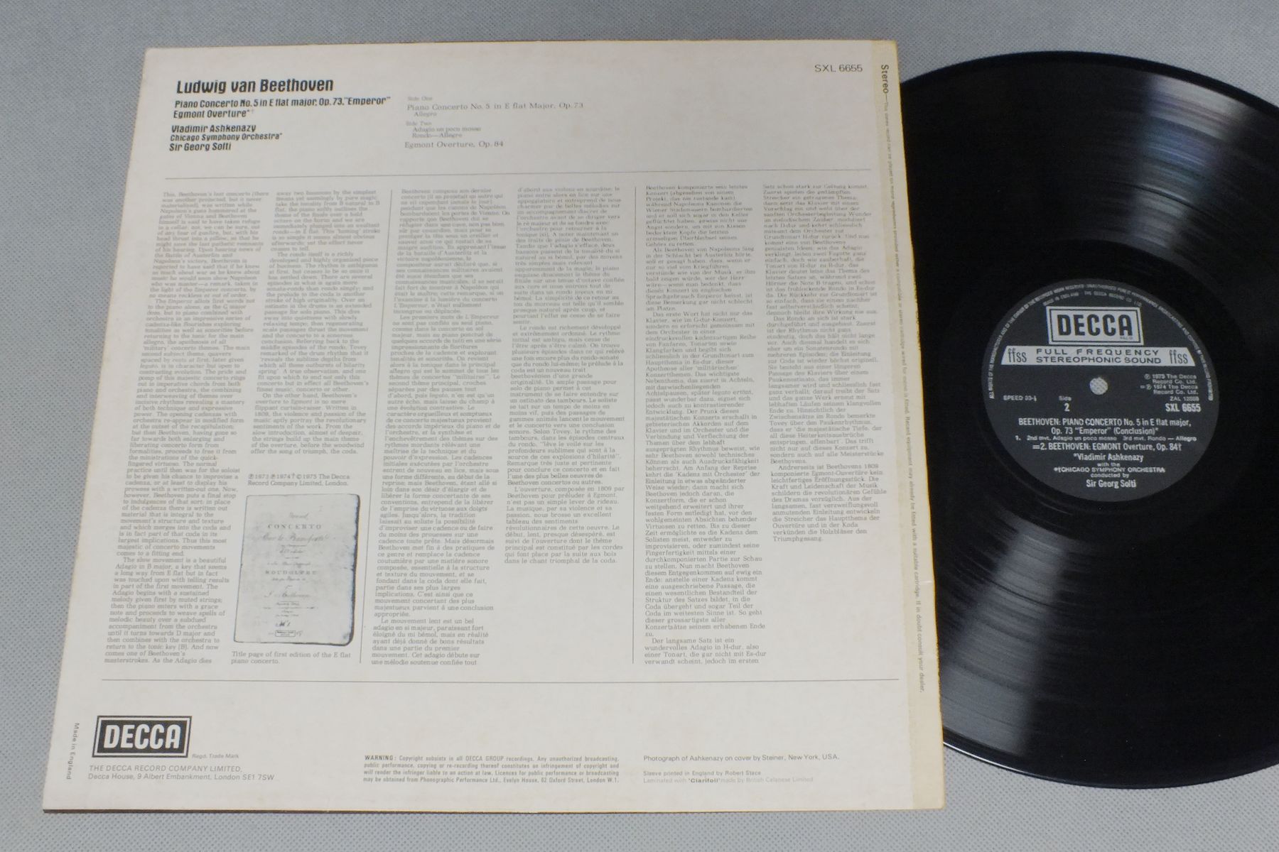 ASHKENAZY-SOLTI/BEETHOVEN PIANO CONC. NO5 SXL 6655 製造国:英国盤 / Media:LP外観:EX盤の状態:EX- 価格(税込):¥31,350(売約済) 送料 7inch:定形外郵便 360円~LP:定形外郵便 660円~送料は、注文の最終画面で確認頂けます。 レコード検索 > > ASHKENAZY-SOLTI/BEETHOVEN PIANO CONC. NO5 外観 (EX)特記事項:裏ジャケ側にシミやよごれ。外観EXの共通説明:ダメージが限定的。中古品としては保存状態がよい方。シミ、ヨゴレ、スレ 少し~軽度。 盤の状態 (EX-)特記事項:薄いスリキズ・細かい表面スレ軽くある感じです。プチ出そうな所は少し。軽微なものが中心の様子です。盤EX-の共通説明:盤面のスリキズが多少有り。音に出そうなものは殆ど無いように見える~さほど気にならないぐらいの軽いプチ数カ所程度。 Tweet それぞれの画像をクリックすると、大きい写真が見られます こちらの商品もお勧めです 990円 KLEMPERER / BRUCKNER-SYM. NO4 1,650円 BEINUM / BEETHOVEN-FAMOUS OVERTURES 990円 IGOR STRAVINSKY / IGOR STRAVINSKY 990円 THOMAS SCHIPPERS / MENOTTI/UNICORN. GORGON AND MANTICORE 1,870円 MENUHIN TWANGLER / BEETHOVEN CONC. POUR VIOLIN 1,320円 KRIPS / SCHUMANN-SYM.S NO 1 & 4 990円 LEINSDORFラインズドルフ / CORNELIUS - THE BARBER OF BAGDAD 1,430円 BRETISLAV BAKALA / LEOS JANACEK-SYM.TTA&SIX LACH DANCES