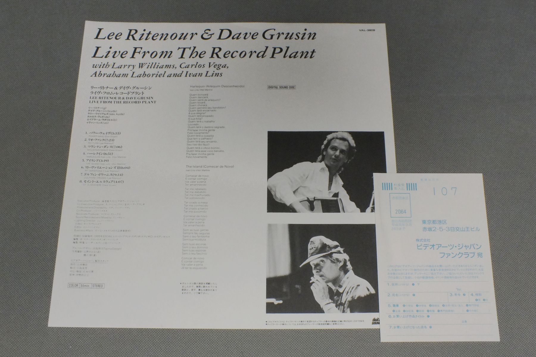 LEE RITENOUR & DAVE GRUSINリー・リトナー & デイヴ・グルーシン/LIVE FROM THE RECORD PLANTライブ・フロム・レコードプラント VAL-3809 製造国:日本盤 / Media:LD外観:EX+盤の状態:EX- 価格(税込):¥1,100 送料 7inch:定形外郵便 360円~LP:定形外郵便 660円~送料は、注文の最終画面で確認頂けます。 > > LEE RITENOUR & DAVE GRUSIN/LIVE FROM THE RECORD PLANT 外観 (EX+)特記事項:特記なし。外観EX+の共通説明:中古としては美品、一見してきれいでダメージが軽微。シミ、ヨゴレ、スレ有っても僅か~少し。 盤の状態 (EX-)特記事項:薄いスリキズ・細かい表面スレ多少ある感じ。殆どが軽微なものの様子です。盤EX-の共通説明:盤面のスリキズが多少有り。音に出そうなものは殆ど無いように見える~さほど気にならないぐらいの軽いプチ数カ所程度。 Tweet それぞれの画像をクリックすると、大きい写真が見られます こちらの商品もお勧めです 1,650円 LEE OSKAR / BEFORE THE RAIN 1,650円 LEE OSKAR / LEE OSKAR